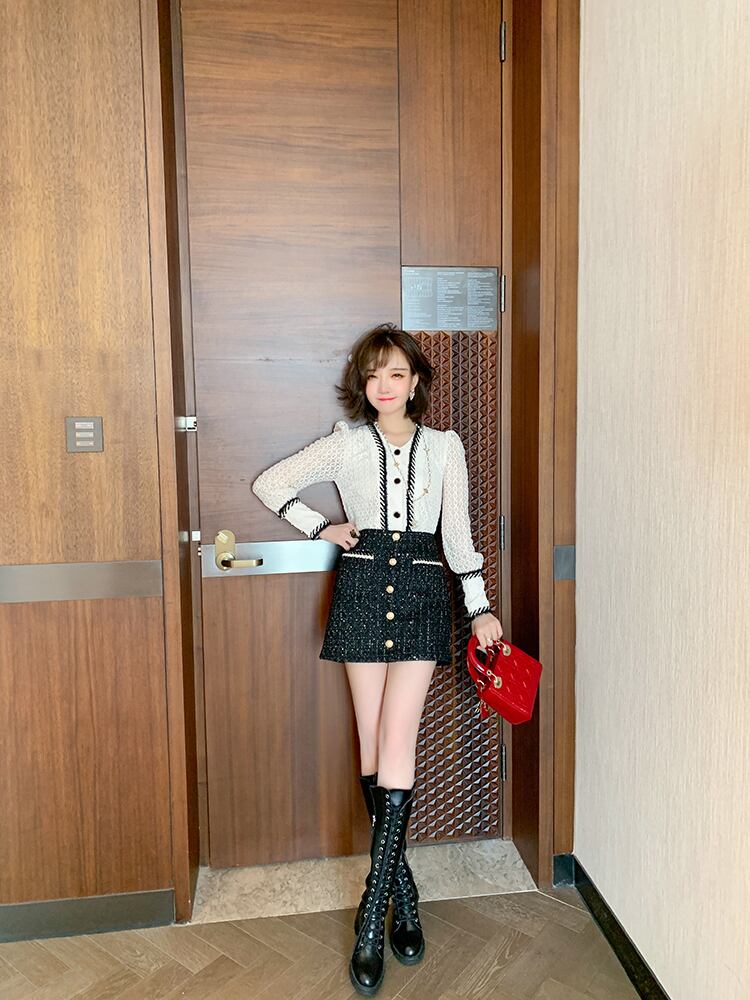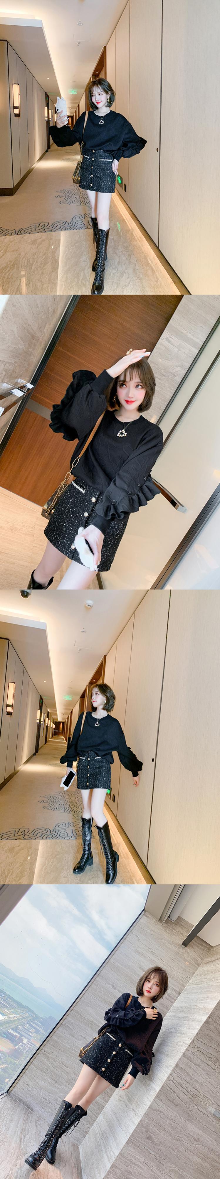 ツィードスタイルAラインハイウェストウェストスリムスカート オータム 秋物 スリムヒップ MIUCO16423099921