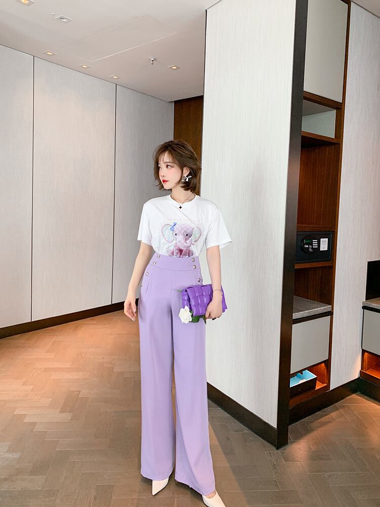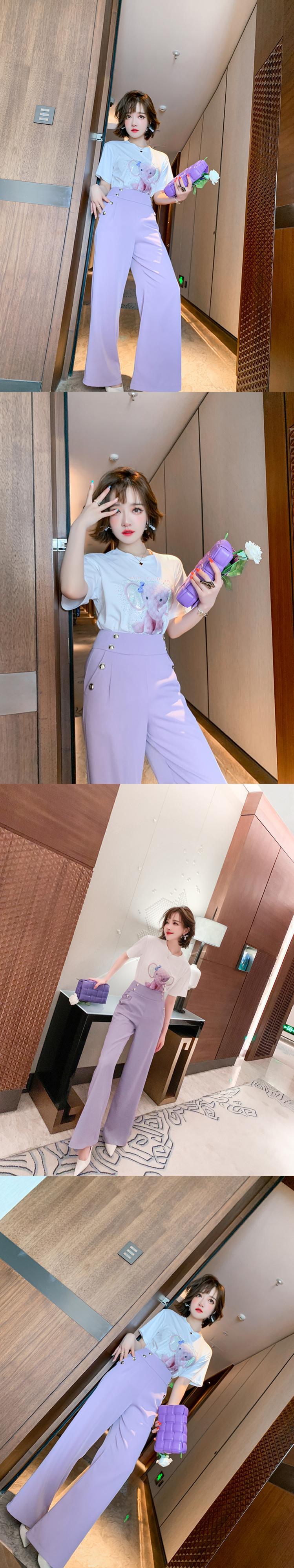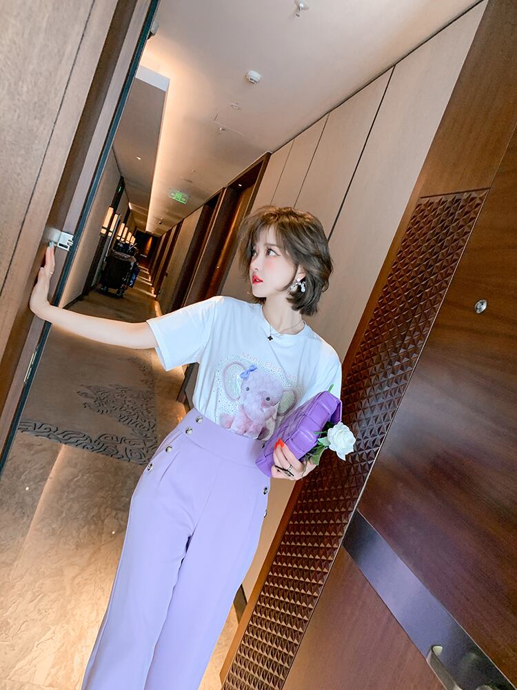 ラウンドネックラインストーンプリント柄ルーズ薄手Tシャツ スプリング 春物 Oネック MIUCO5028303067