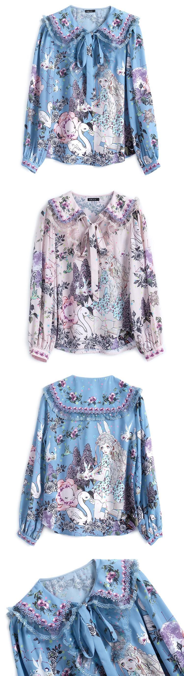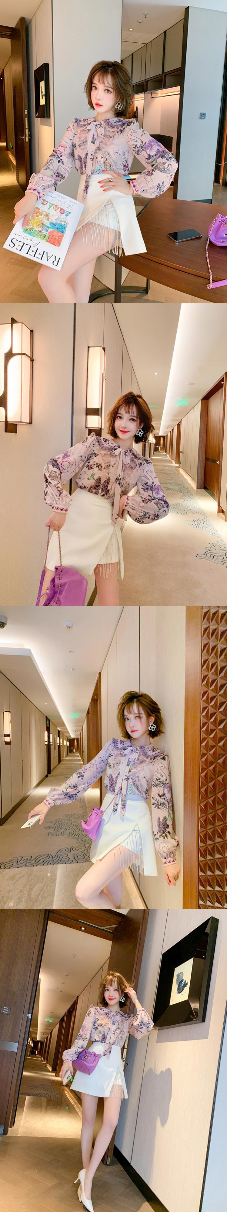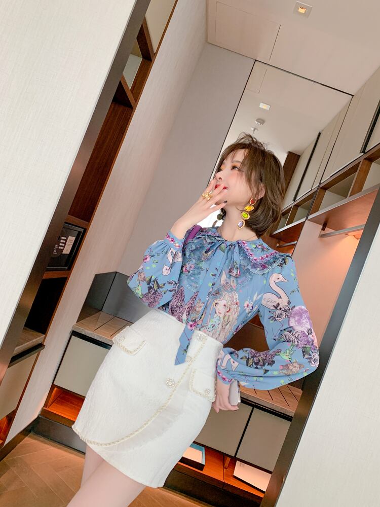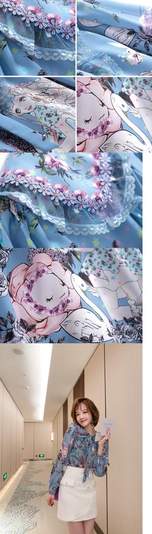 スタイルカラーリボンレースプリント柄シャツ スプリング 春物 MIUCO78983895421