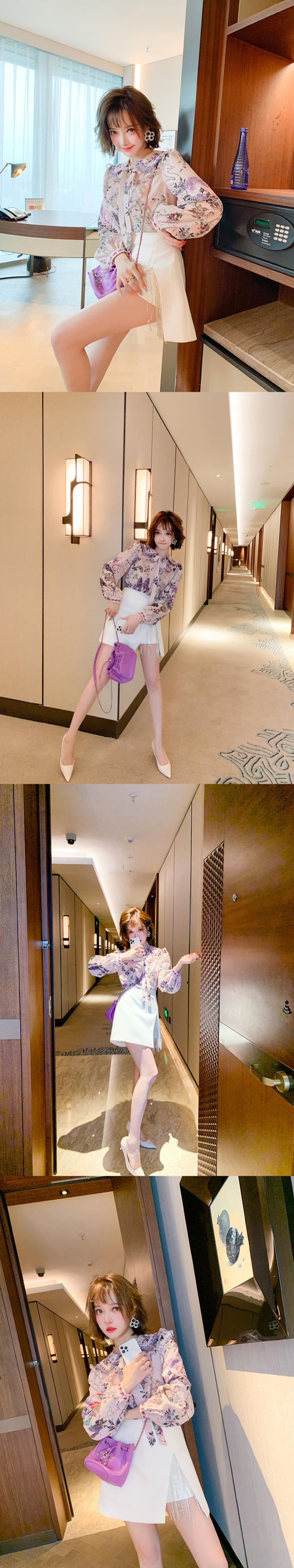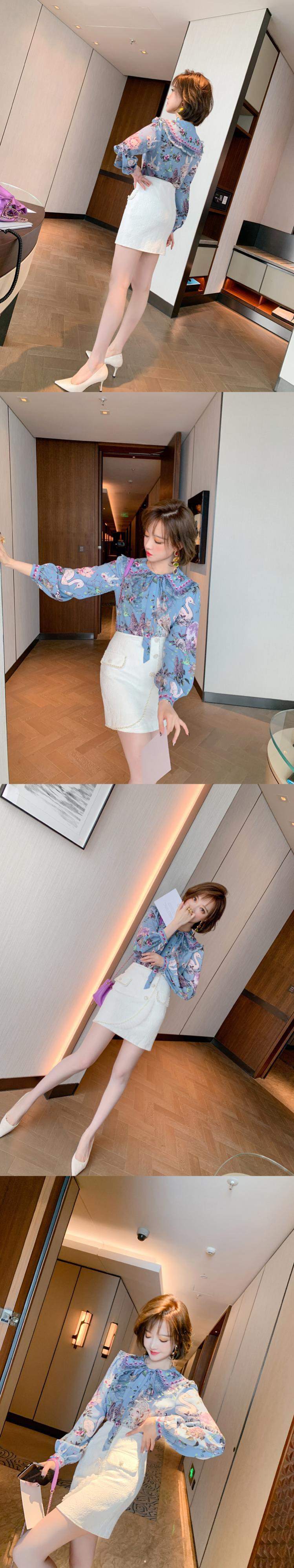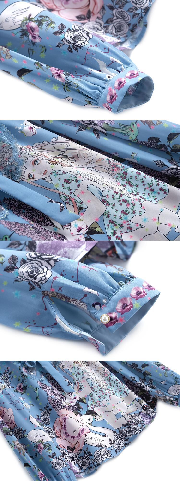 スタイルカラーリボンレースプリント柄シャツ スプリング 春物 MIUCO78983895421