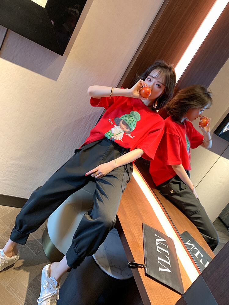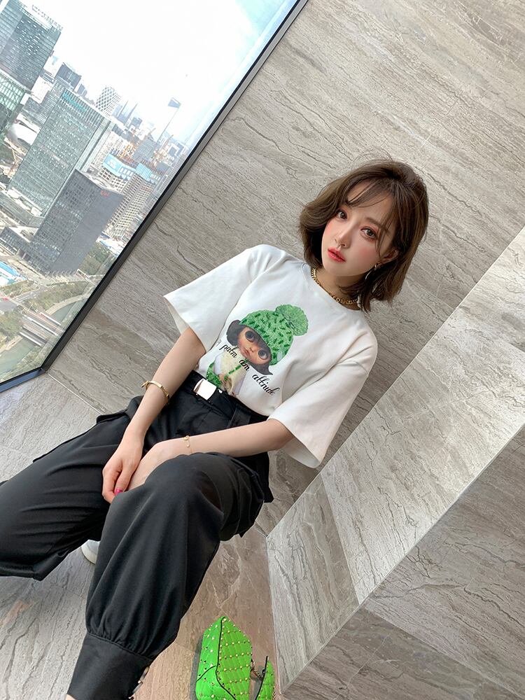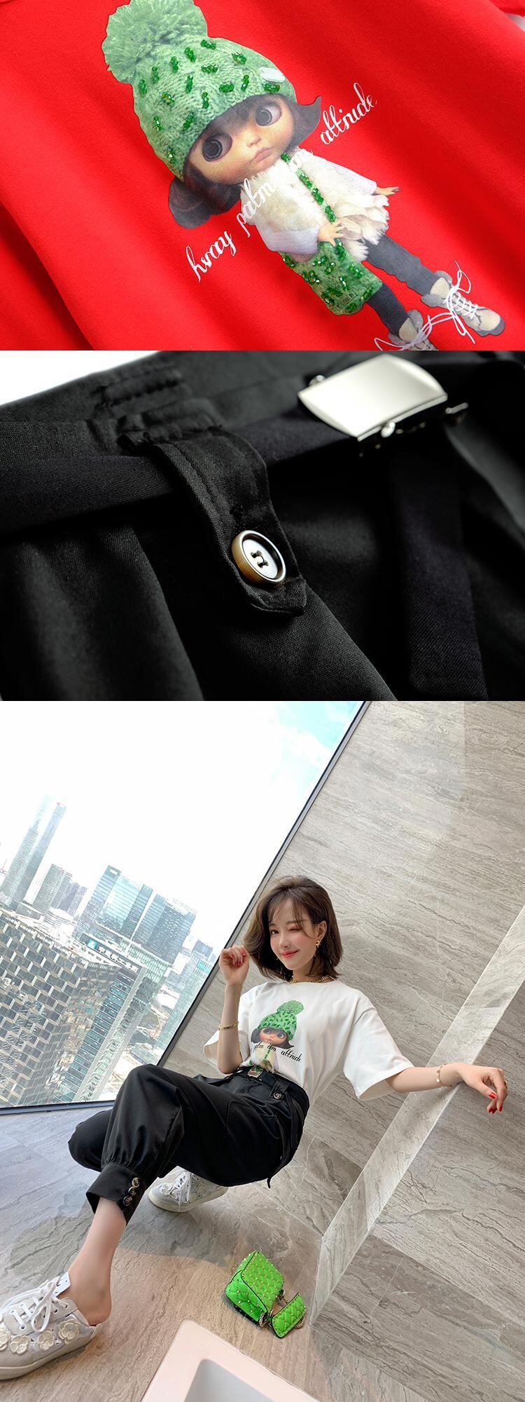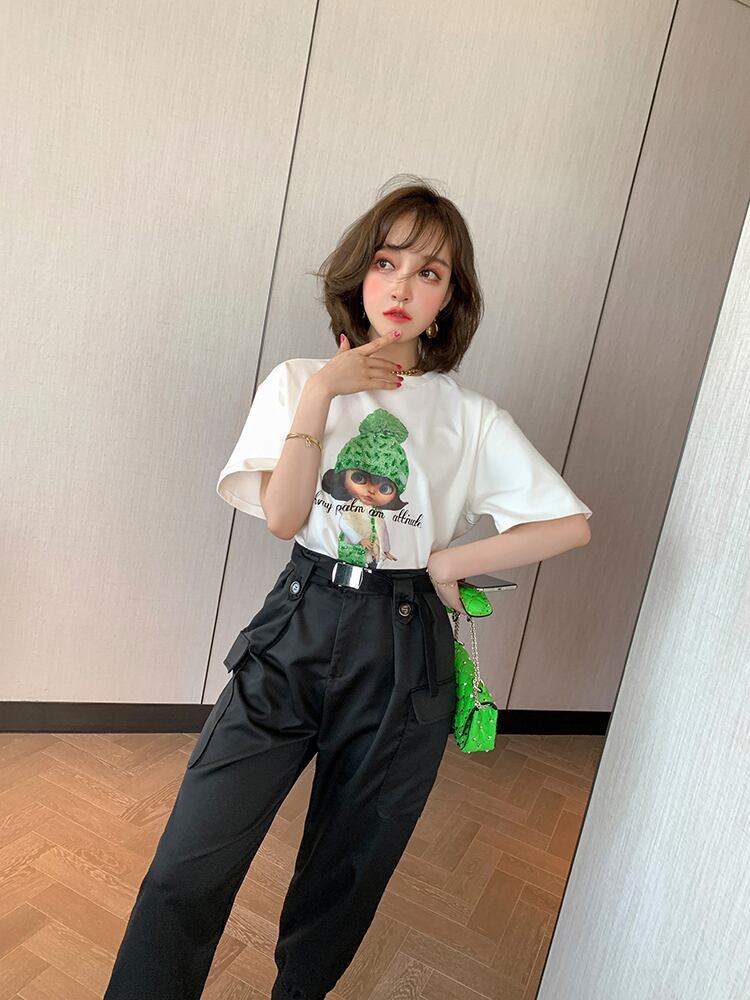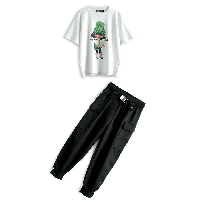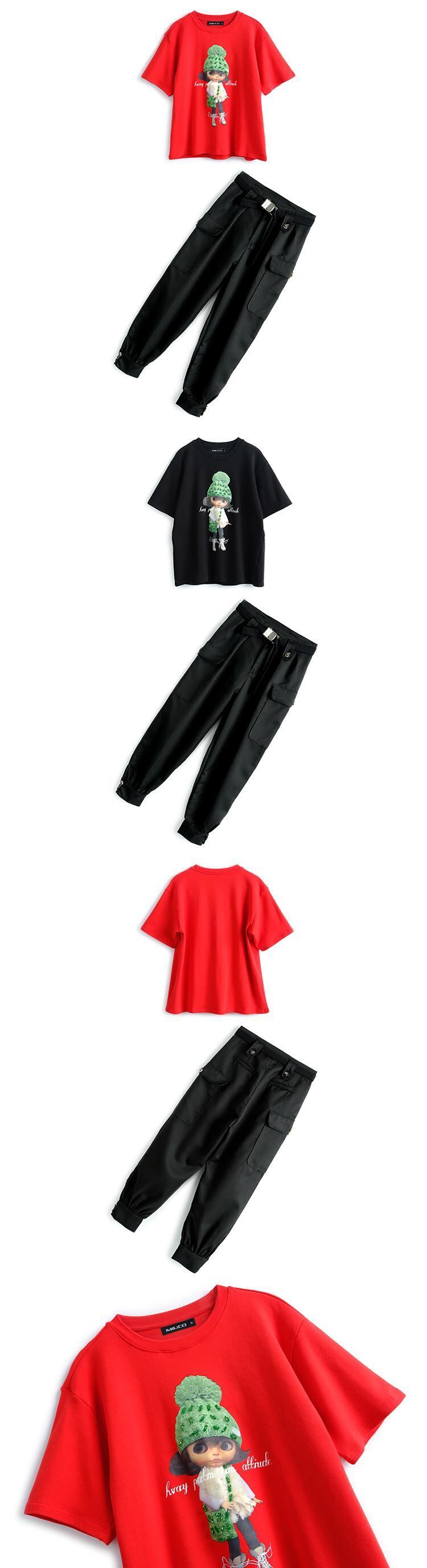 ラウンドネックルーズTシャツ ハイウェストウェストパンツ オータム 秋物 Oネック MIUCO68056791333