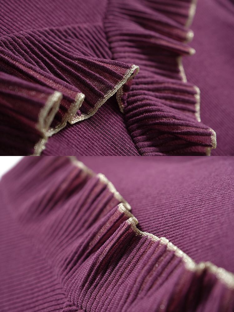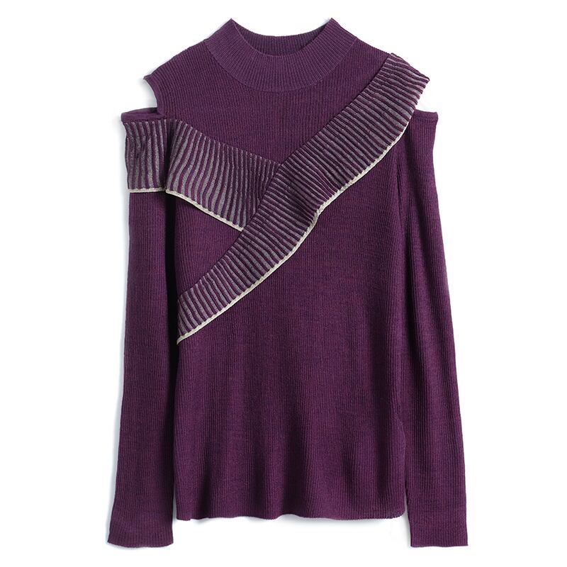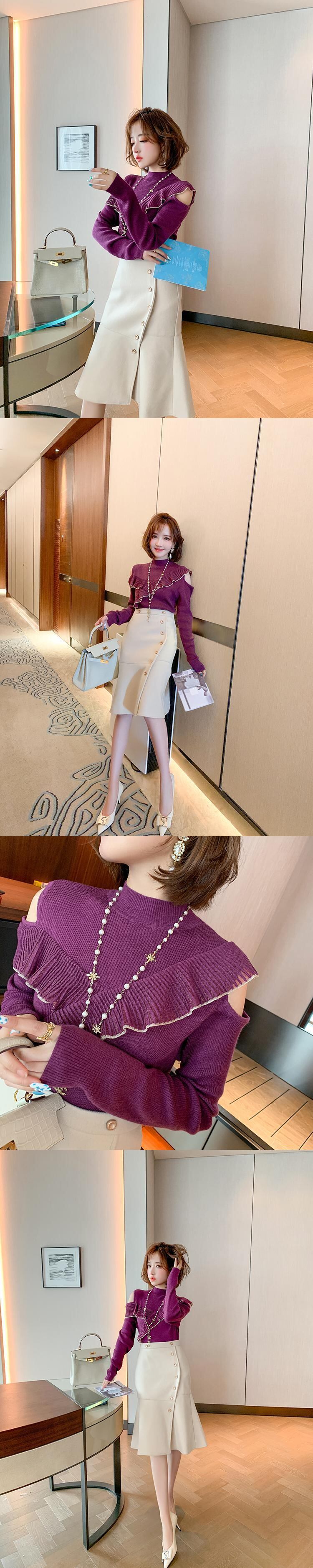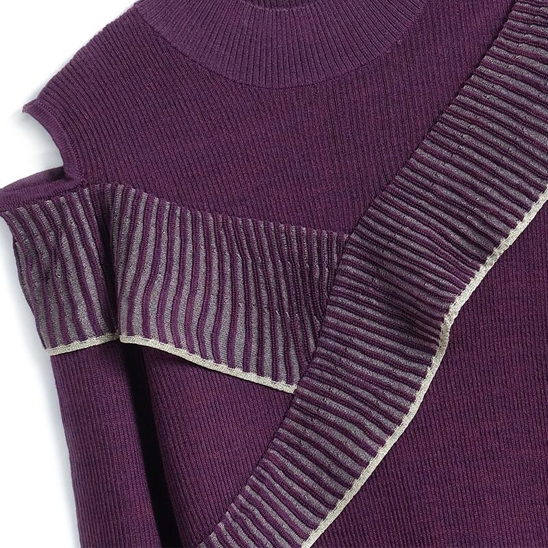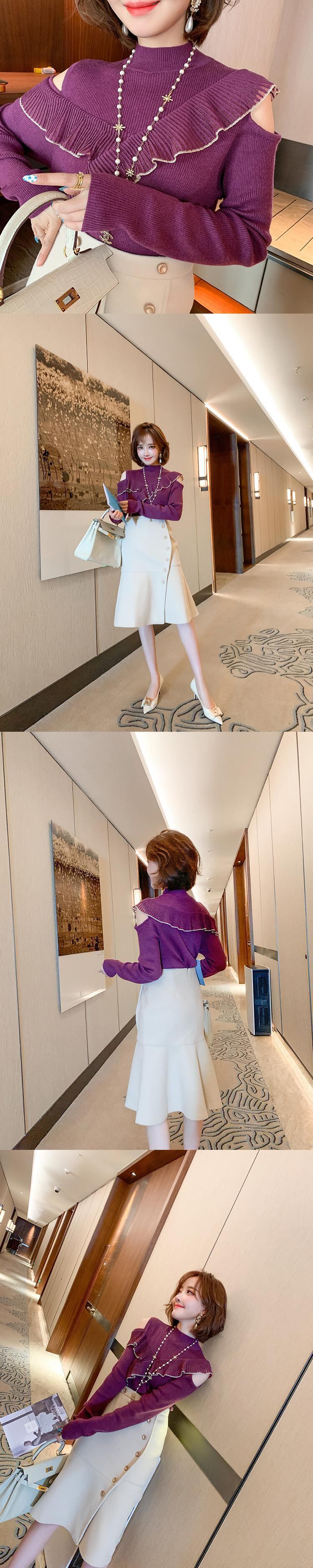 プリーツセーター オータムウィンター エレガント 秋物 冬物 オフショルダー ステッチ MIUCO15795280226