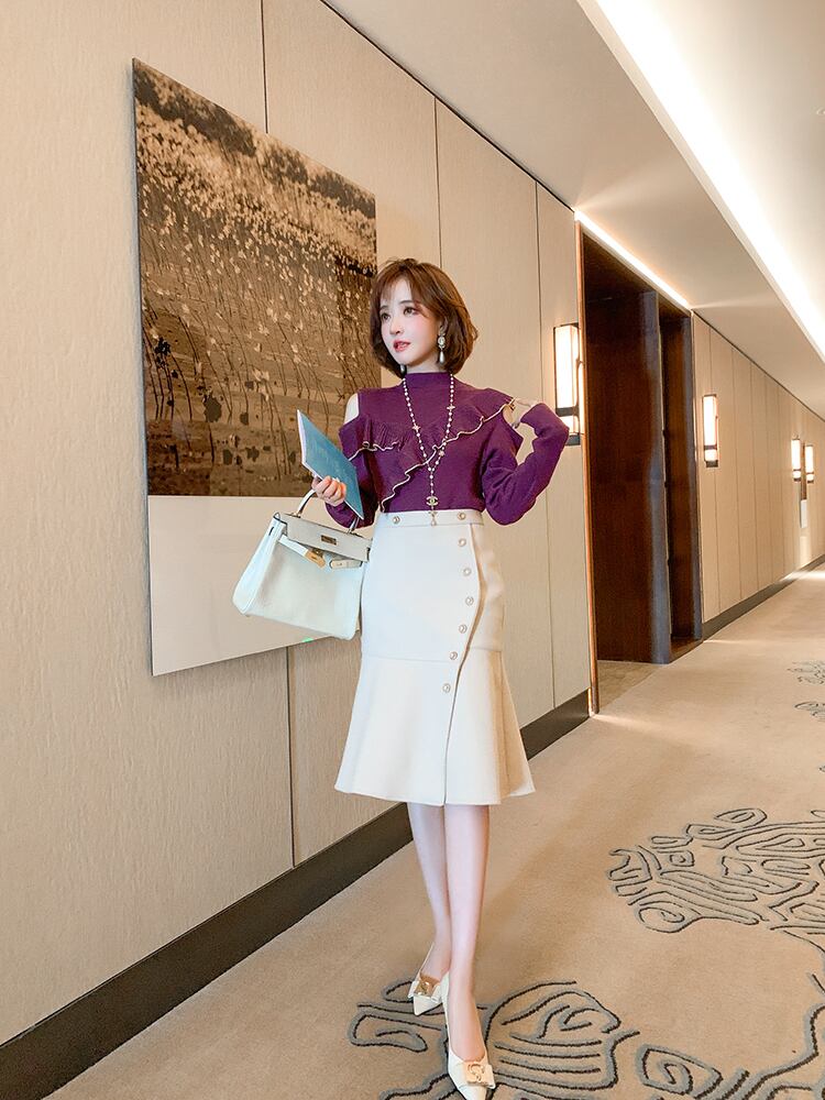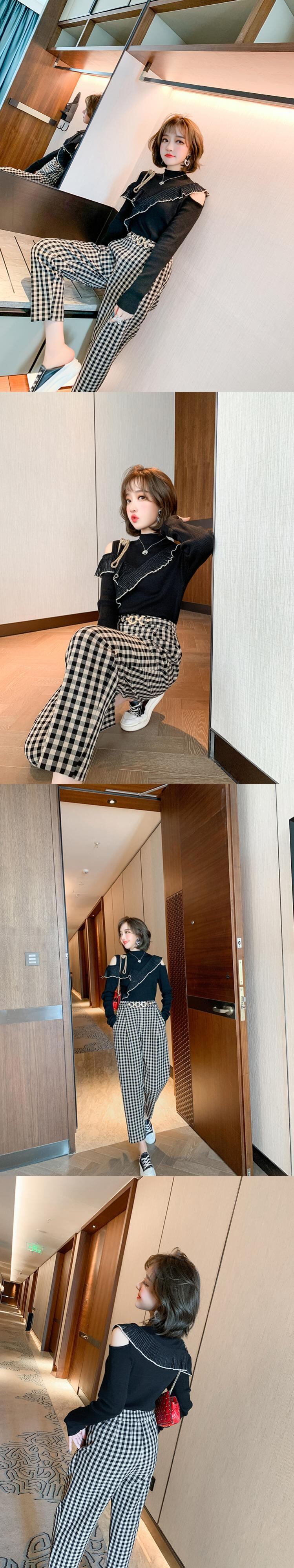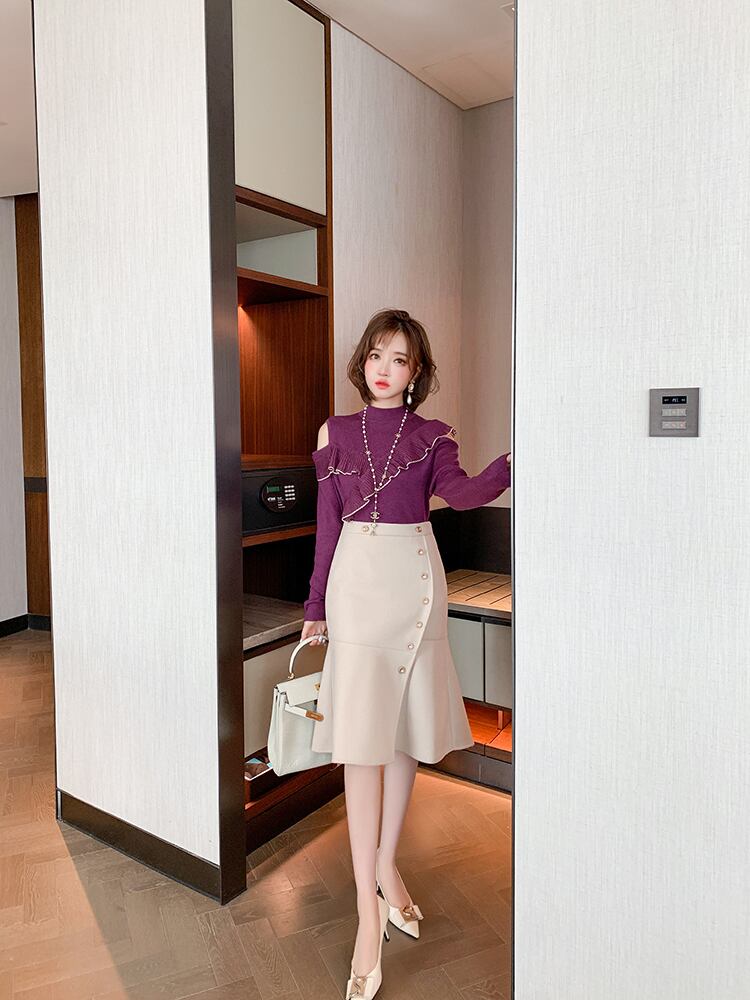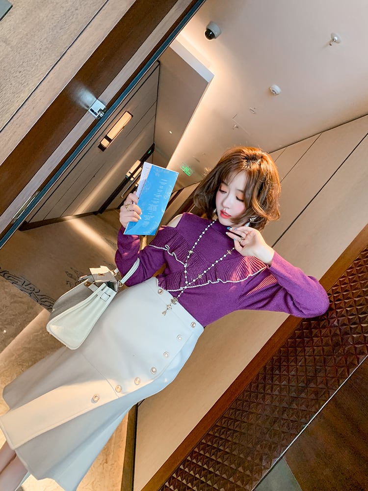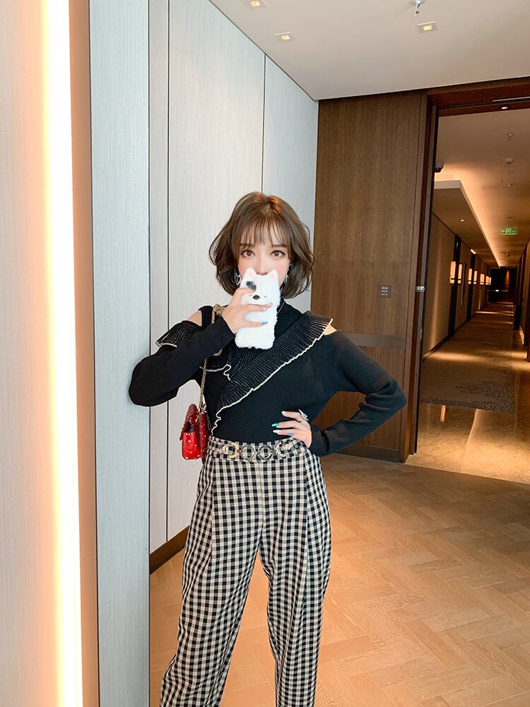 プリーツセーター オータムウィンター エレガント 秋物 冬物 オフショルダー ステッチ MIUCO15795280226