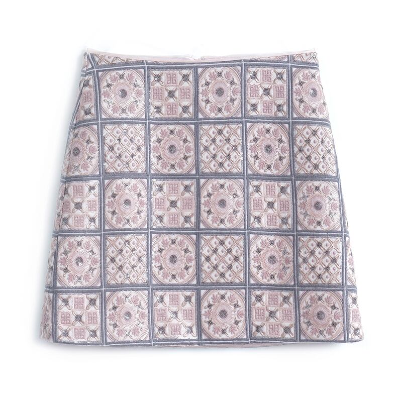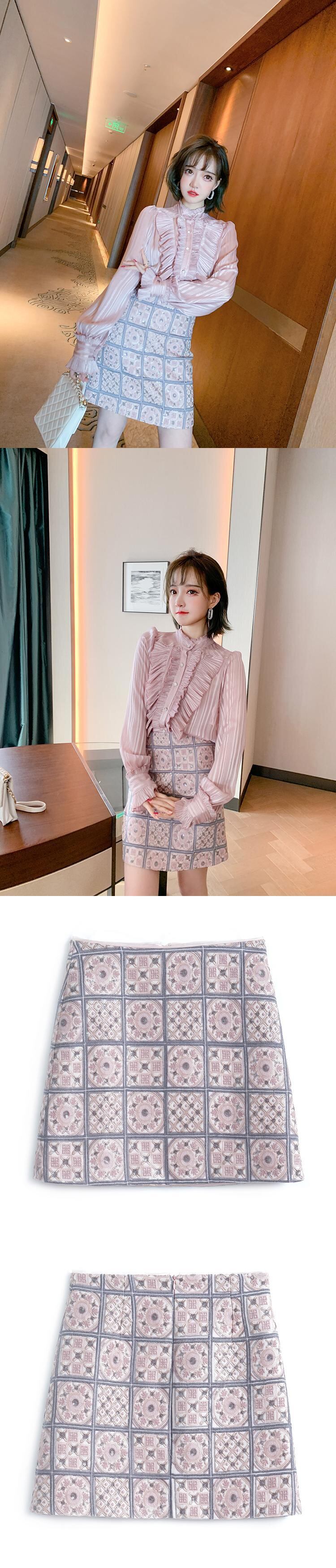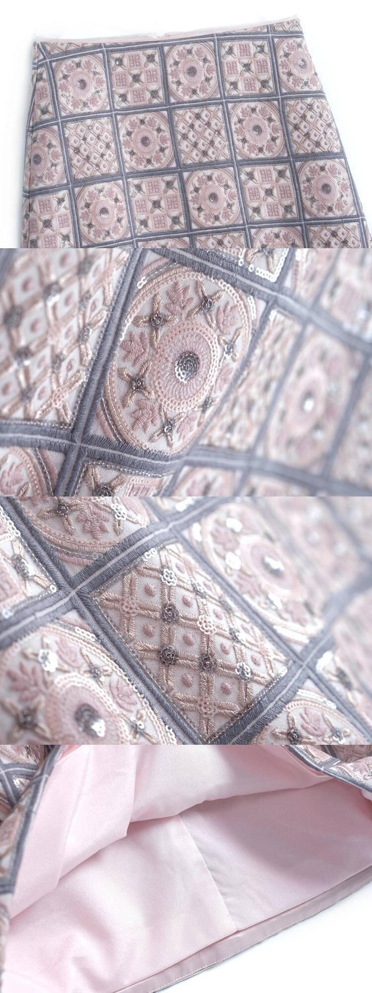 格子柄パターン薄手Aラインスカート スプリング レッド 刺繍 春物 MIUCO36125958979