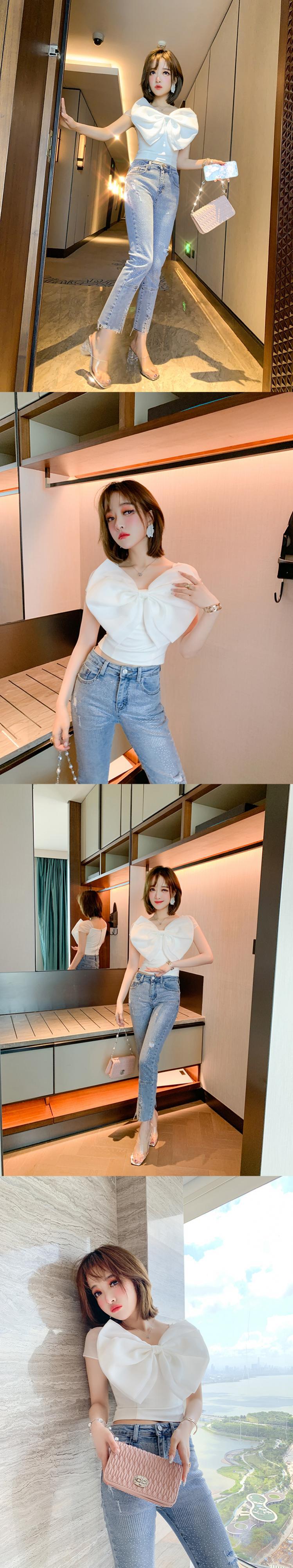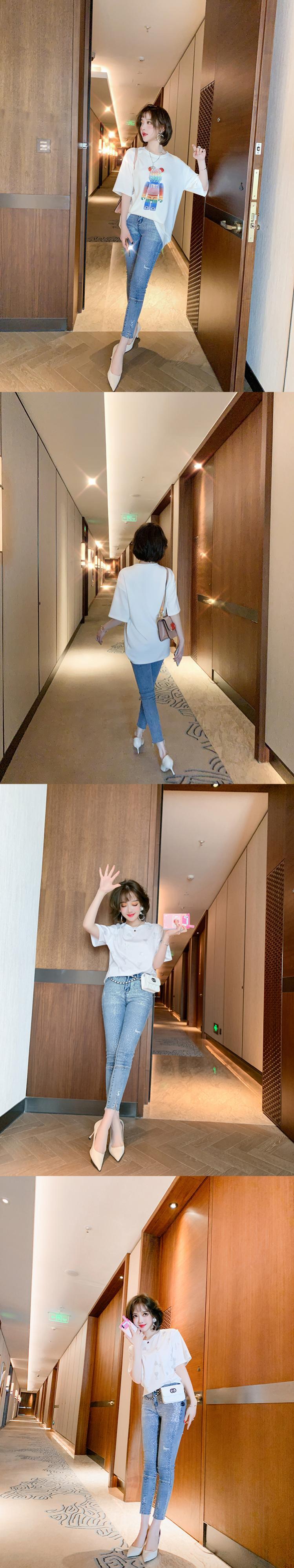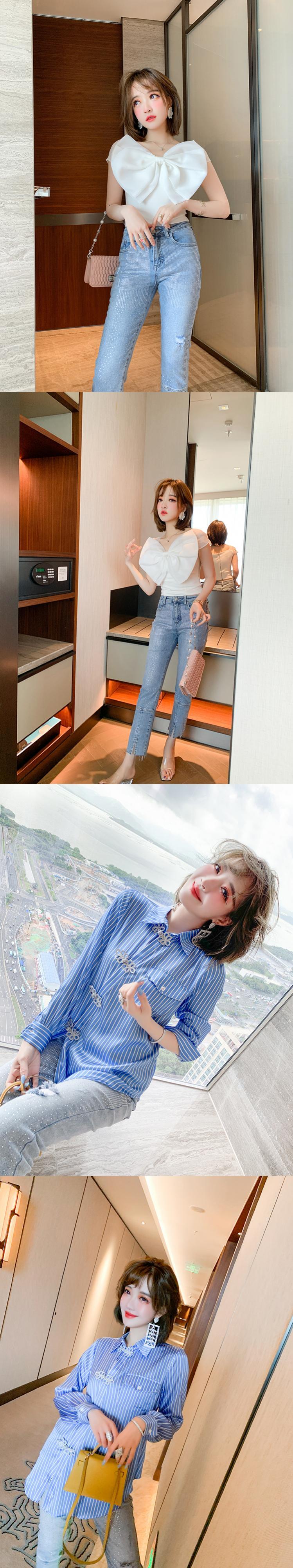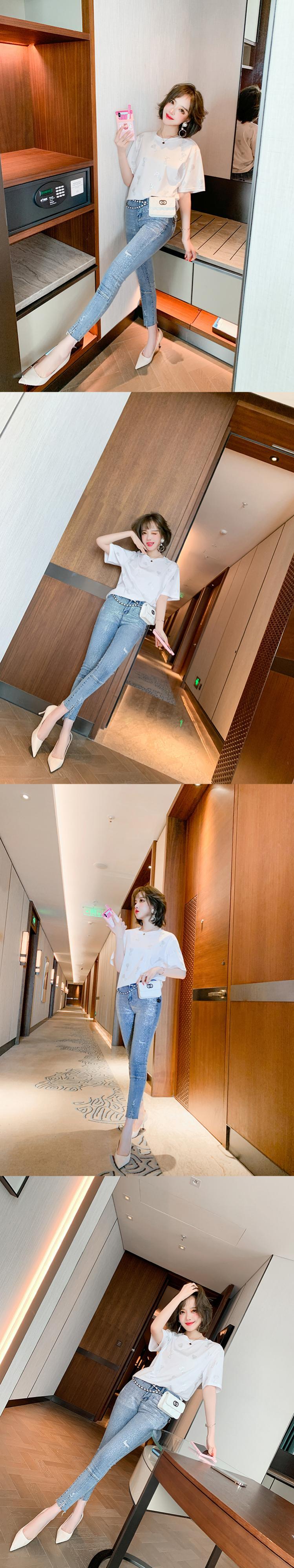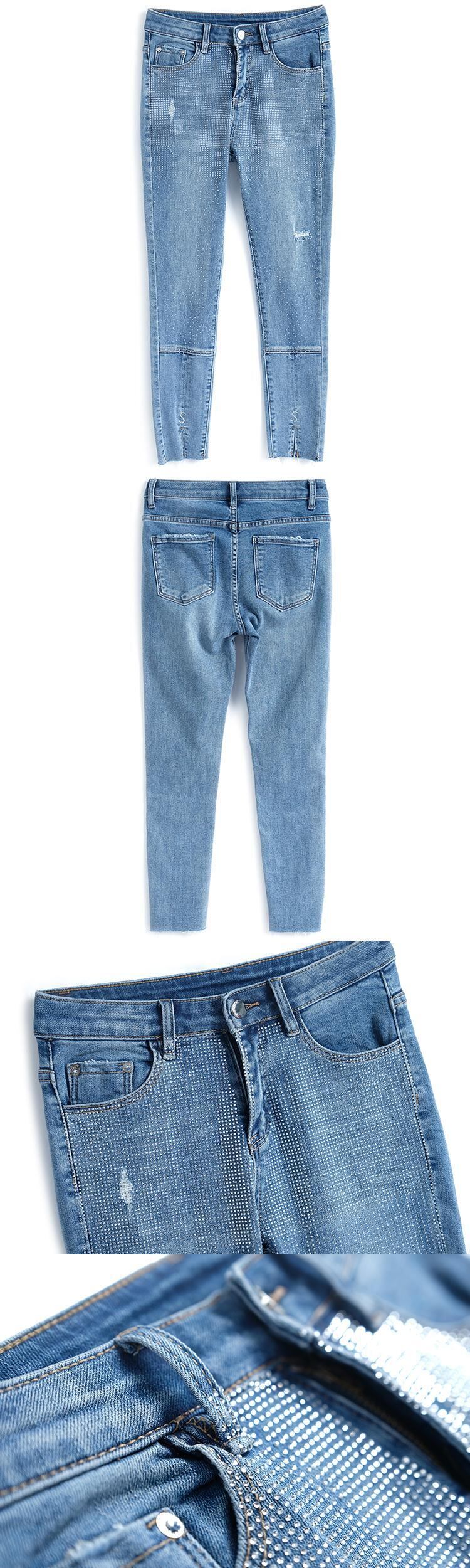 ラインストーンスリムスキニーウェストスタイルジーンズ スプリング 春物 MIUCO99154944395