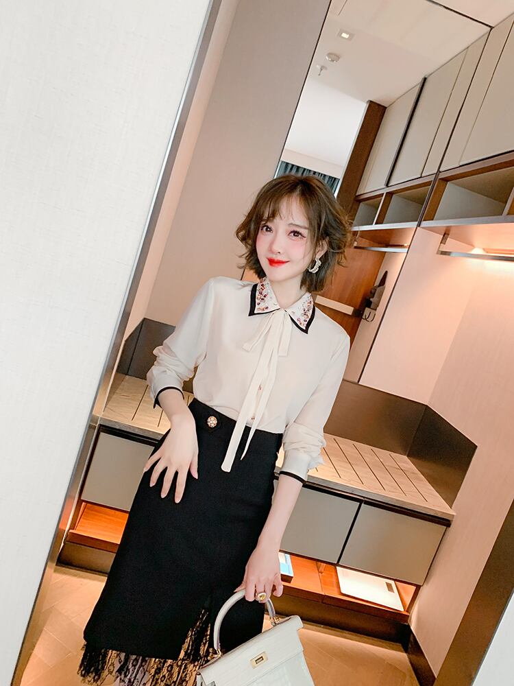 カラーリボンシャツ スプリング 春物 MIUCO75464445894