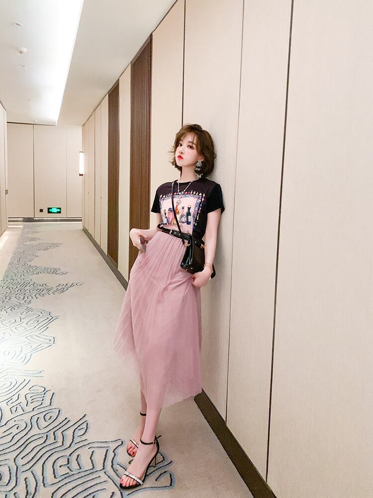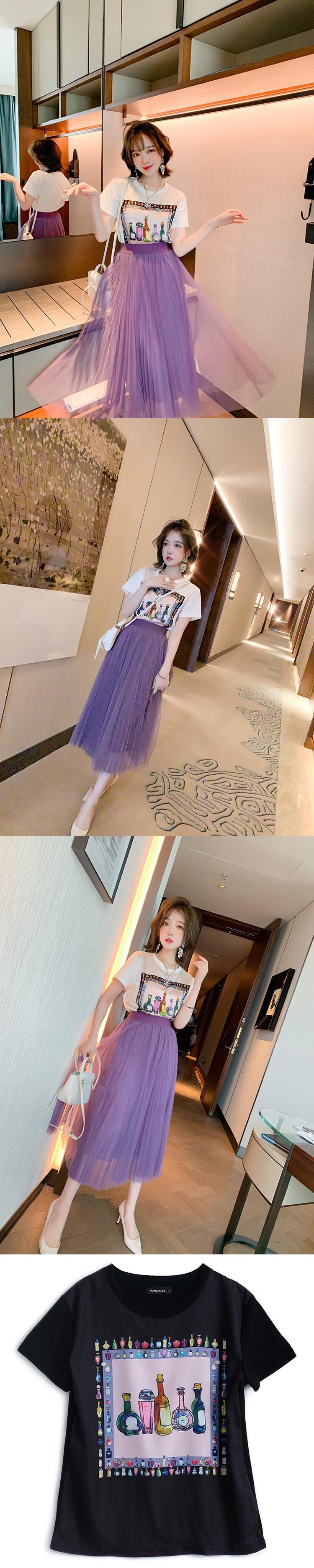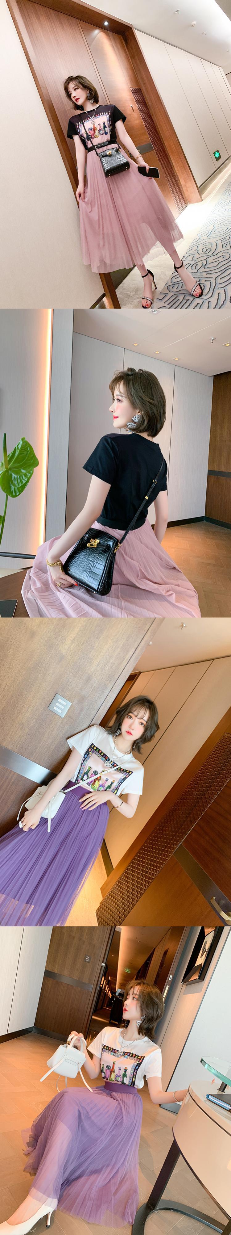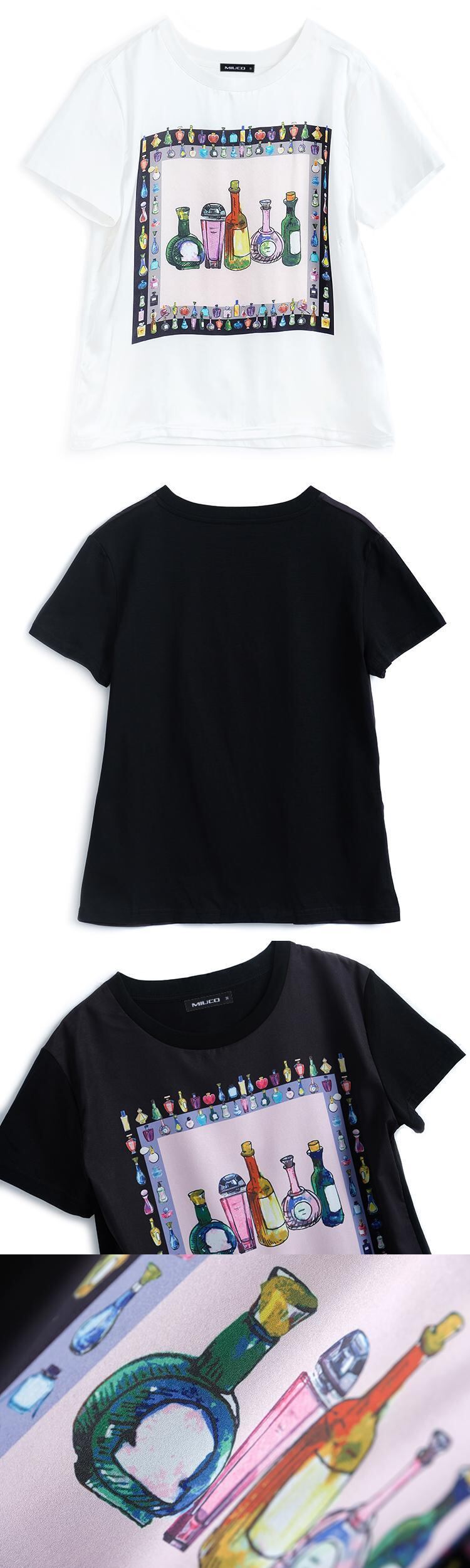 プリントラウンドネック半袖スリーブスリムTシャツ ショート ハーフスリーブ サマー 夏物 オータム 秋物 Oネック ステッチ MIUCO57642350192