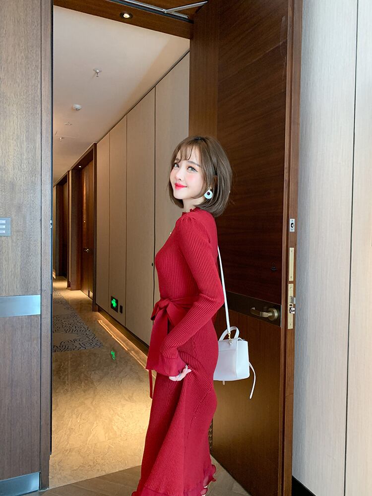 ストライプカラーウェストニットドレス ウィンター 冬物 MIUCO82493421465