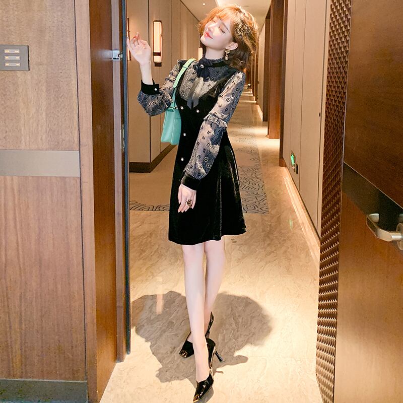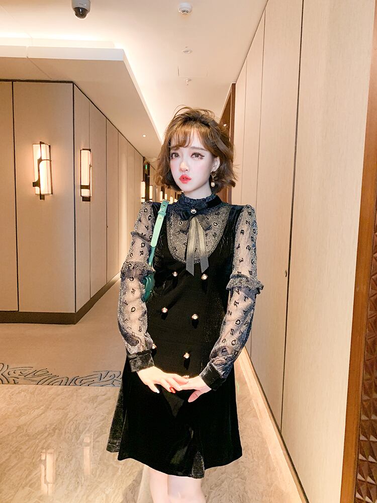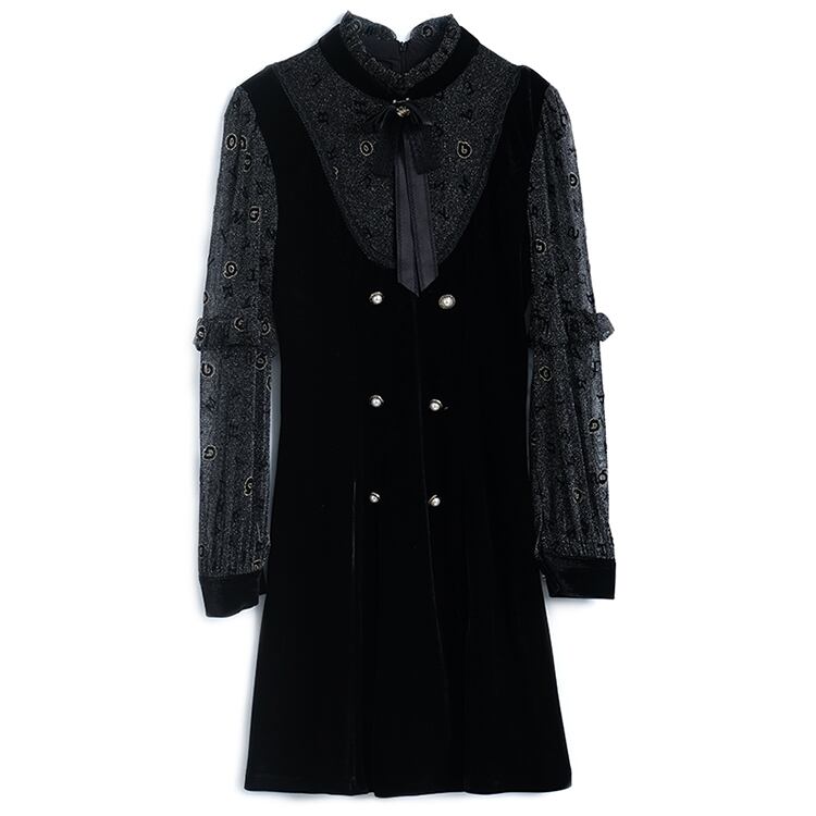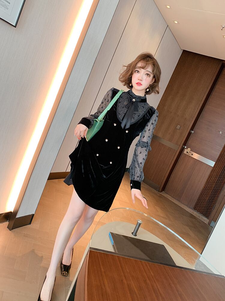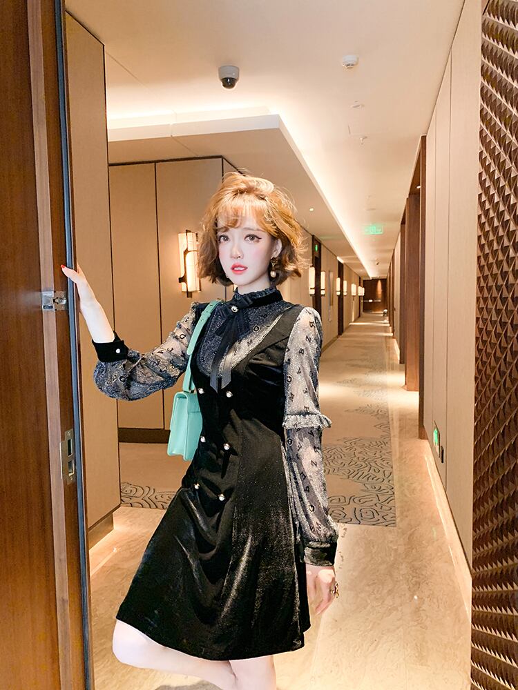 リボンウェストベルベットドレス オータム エレガント 秋物 シルク ステッチ MIUCO73923384720