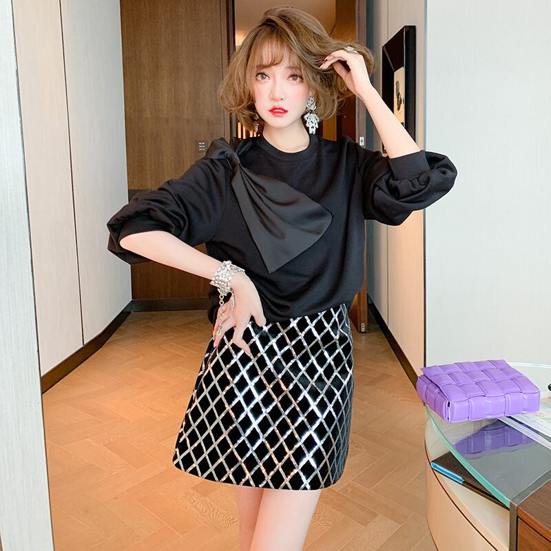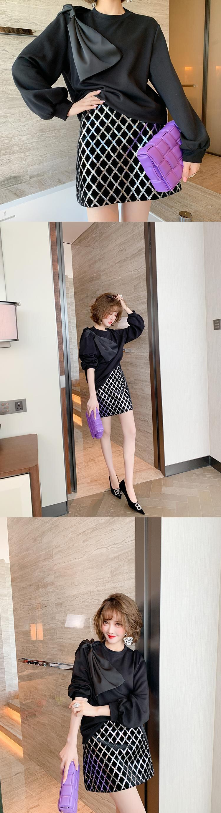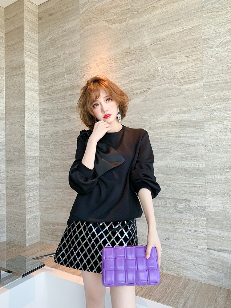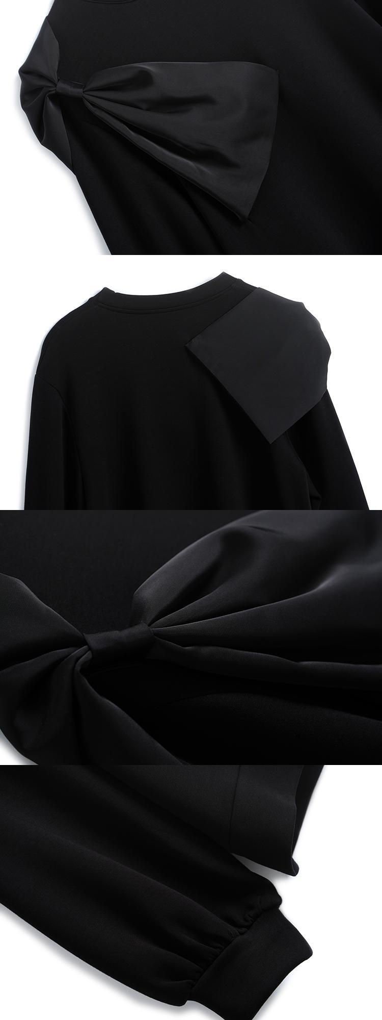 リボンアシンメトリーラウンドネックルーズセーター トップス オータム 秋物 ウィンター 冬物 Oネック MIUCO76689364486