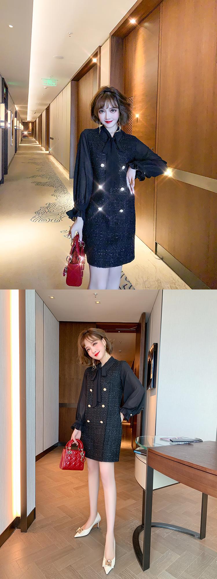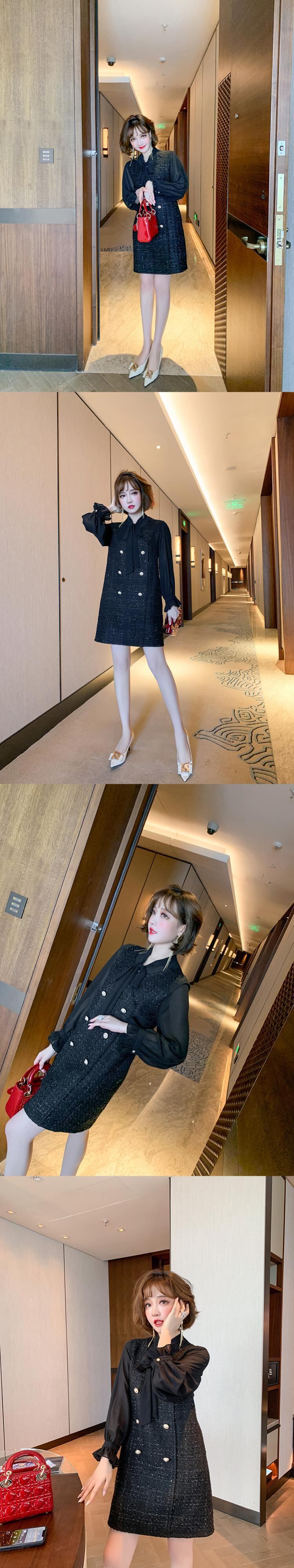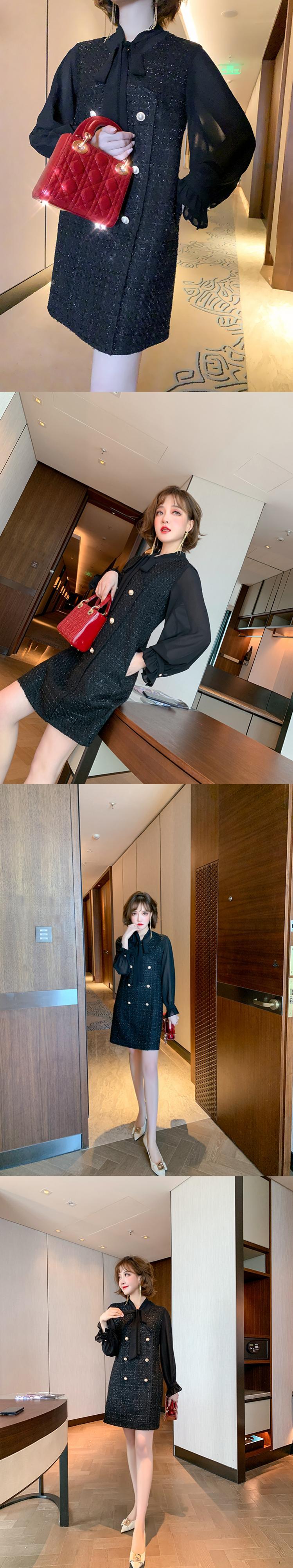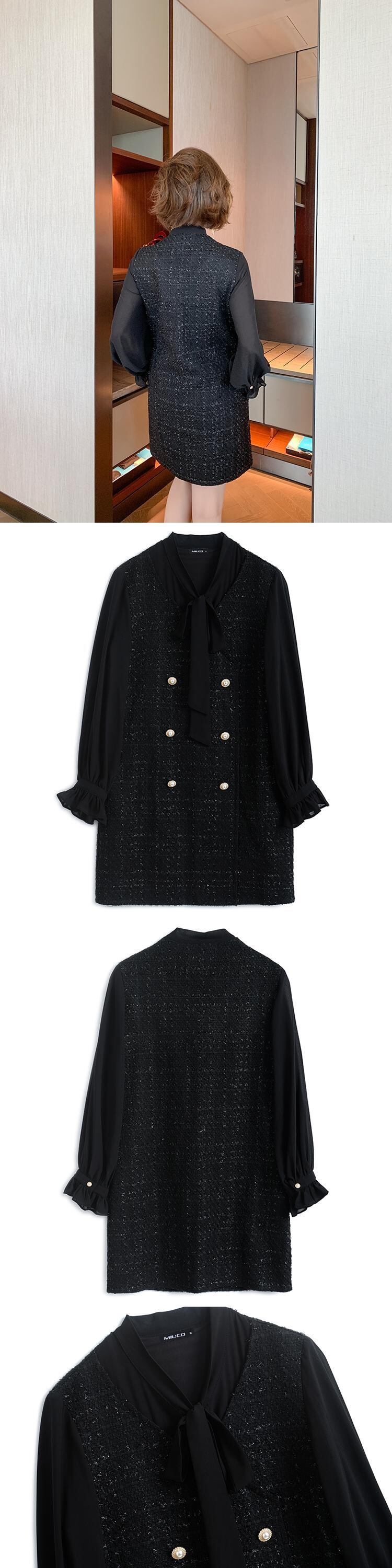 リボンスリーブツィードドレス オータム 秋物 MIUCO75853696723