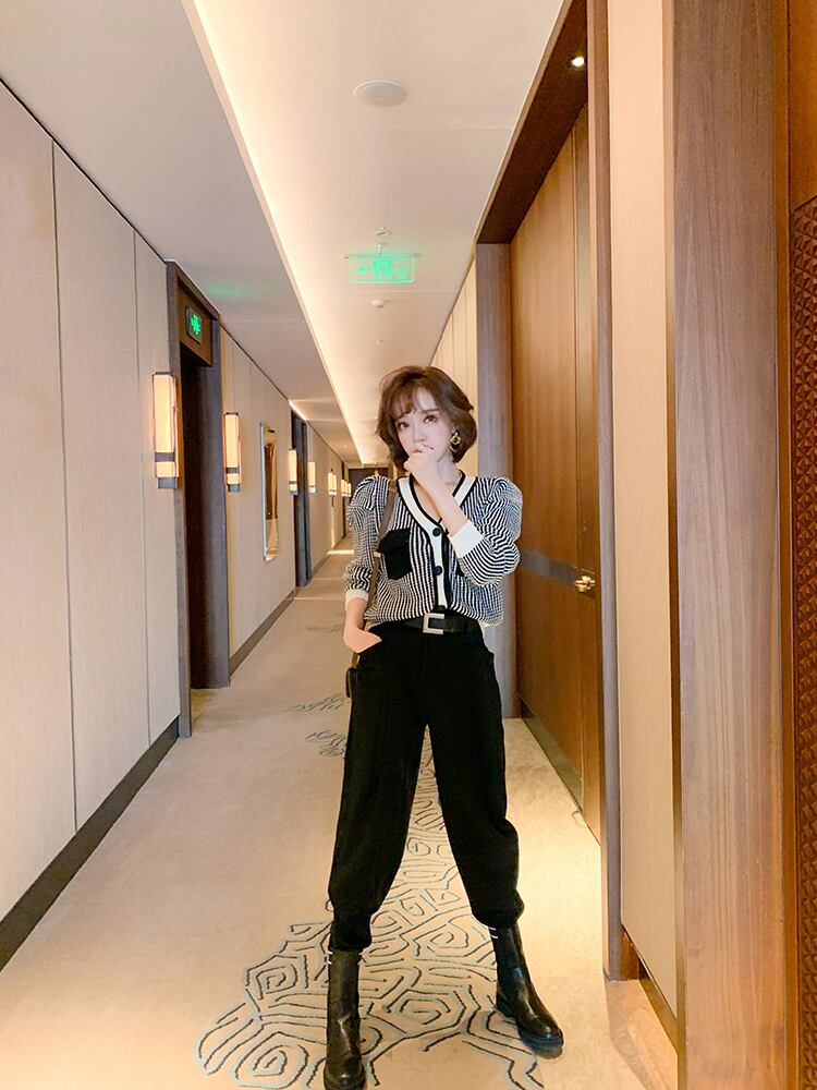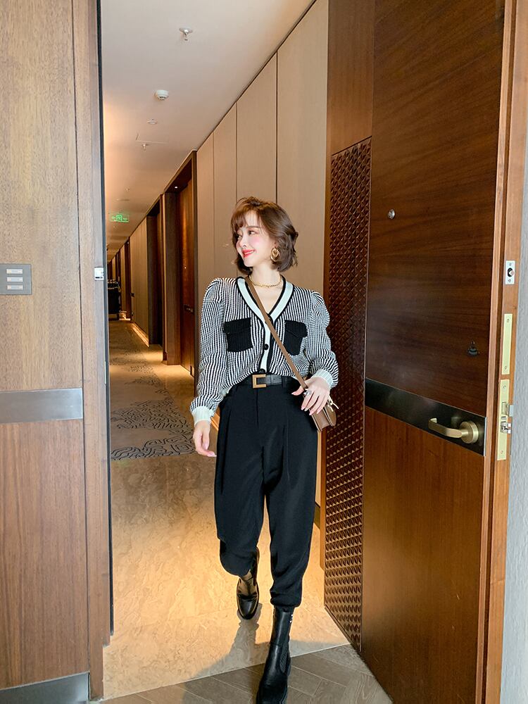 ストライプVネックニットカーディガンパンツ セット ウィンター 冬物 MIUCO50059609003