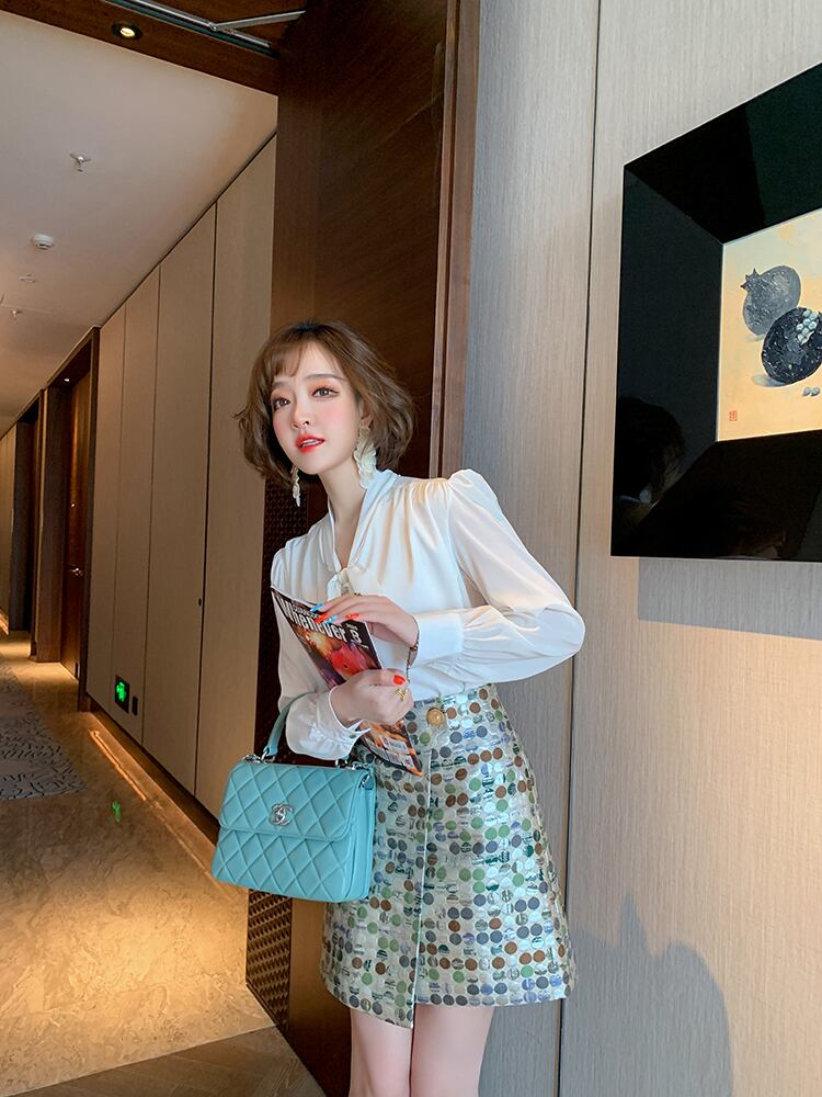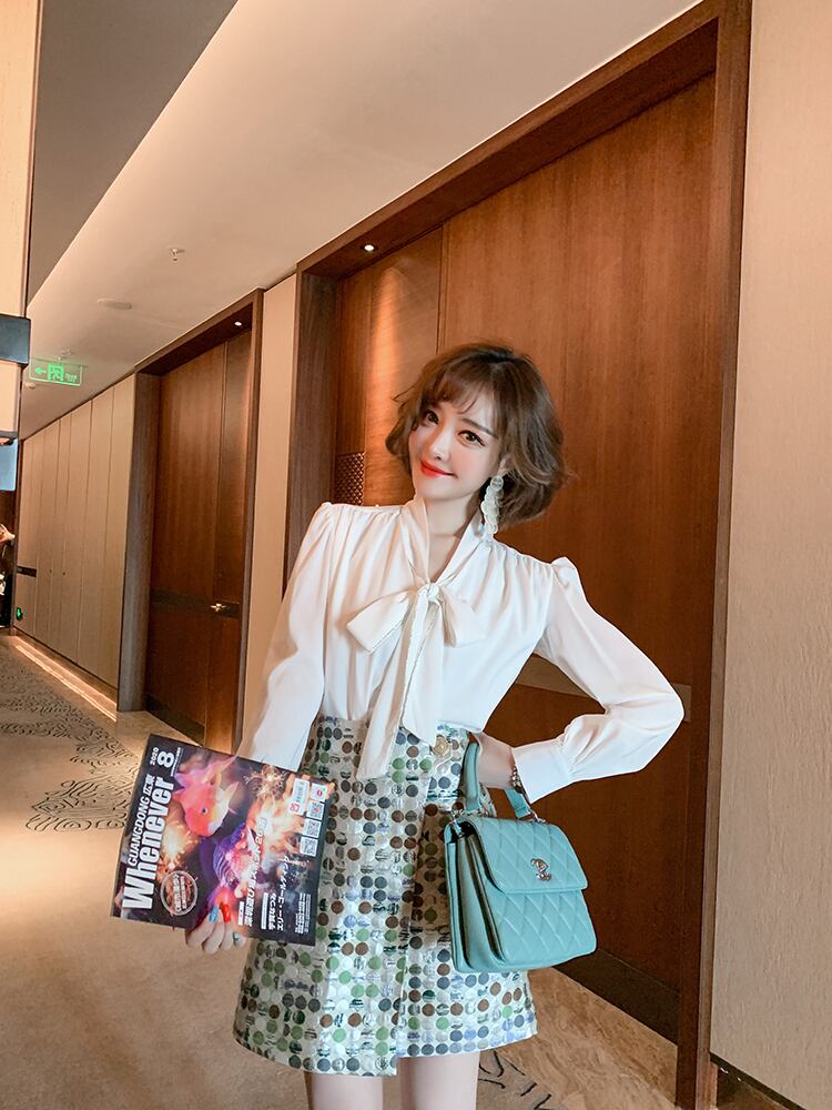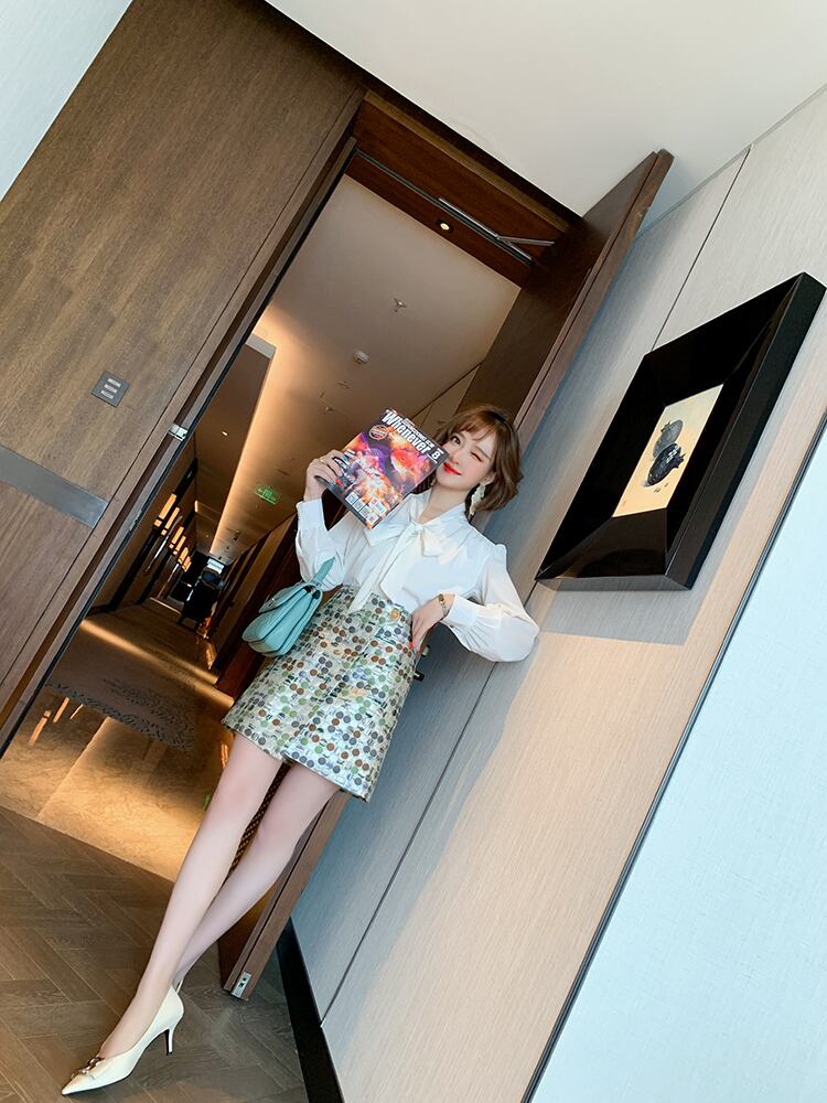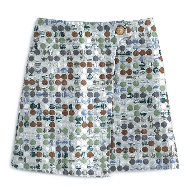 カラー水玉ジャカードハイウェストウェストAラインスカート オータム エレガント 秋物 MIUCO84469185424
