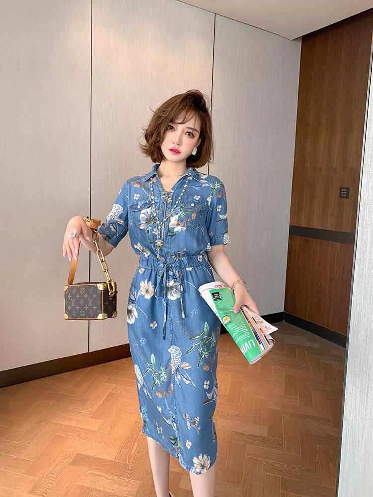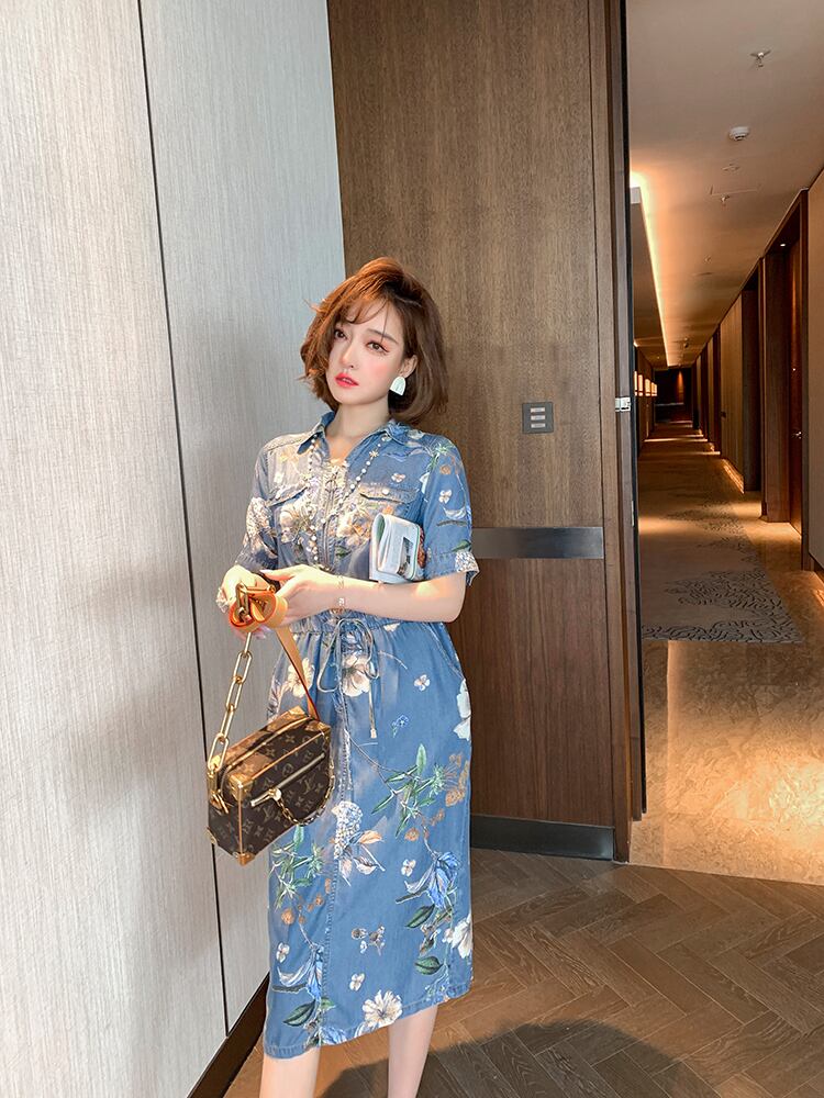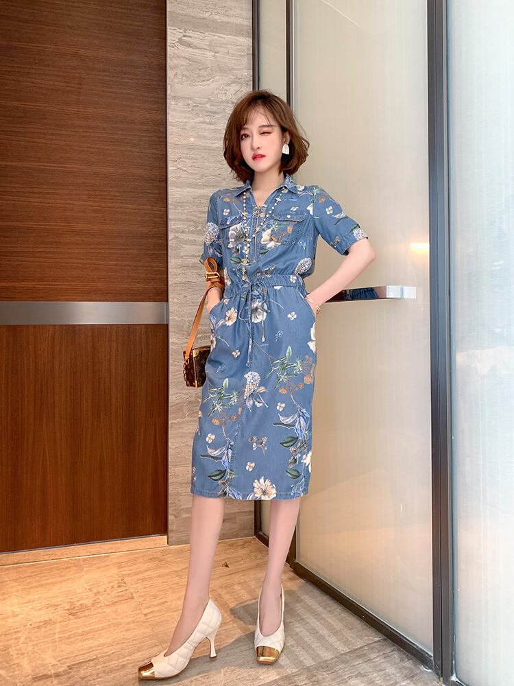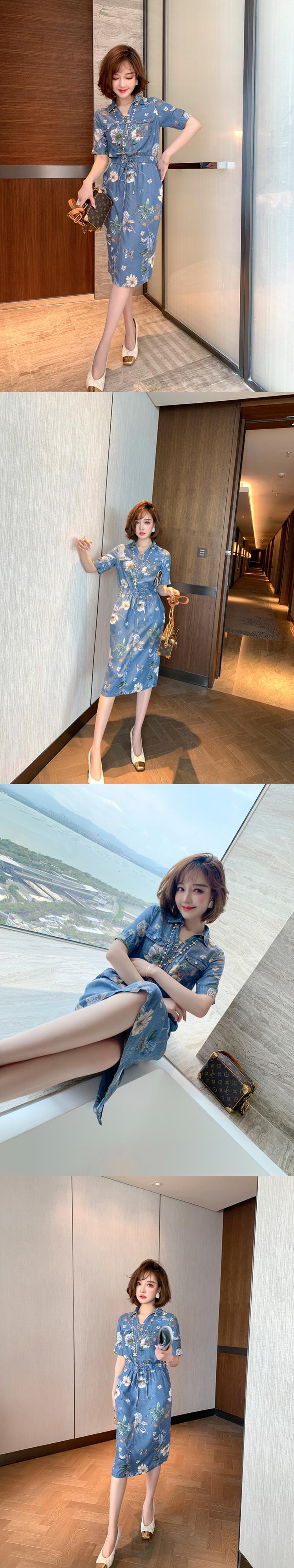ジッパーギャザーウェストプリントドレス サマー 夏物 MIUCO51822097801