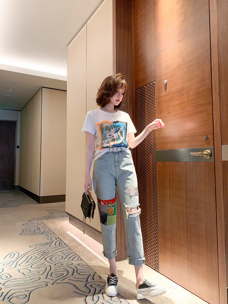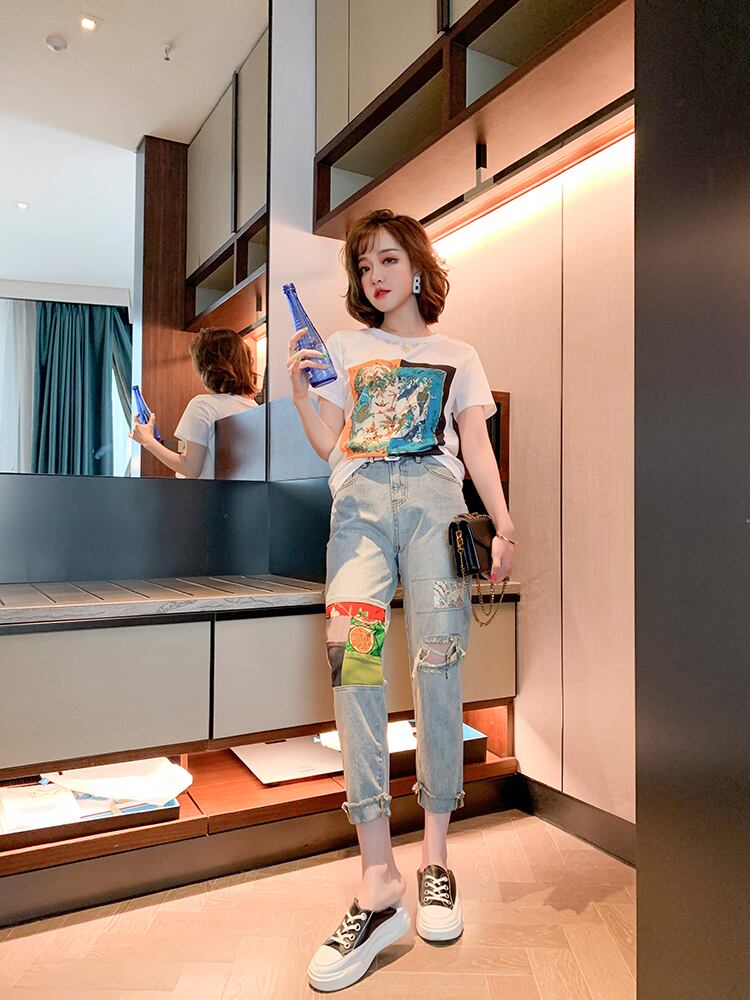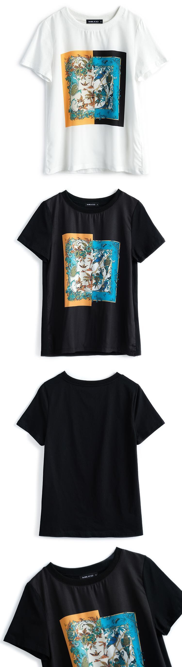 ラウンドネックプリントルーズTシャツ トップス スプリング 春物 Oネック MIUCO99743103321