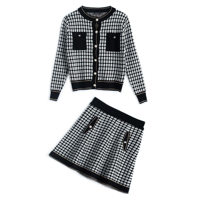ボタンラウンドネックカーディガンAラインニットスカート オータム エレガント 秋物 Oネック シルク MIUCO5802019343