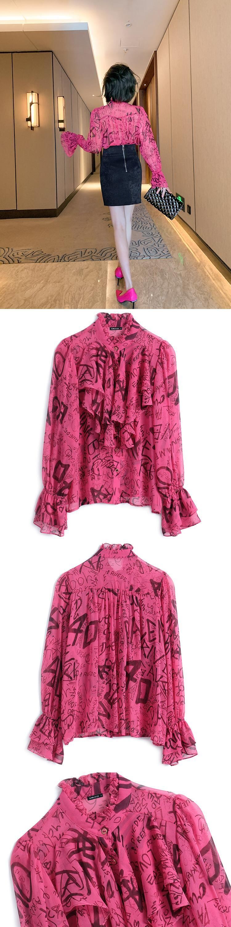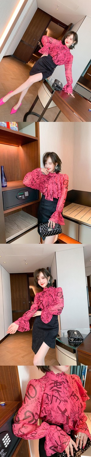 プリントレースカラースリーブシャツ スプリング レッド 春物 ステッチ MIUCO32430090018