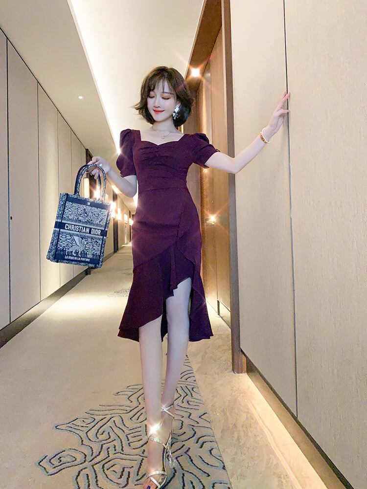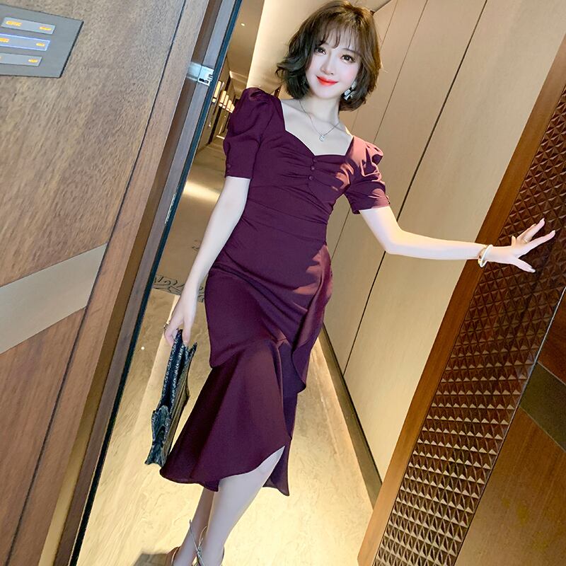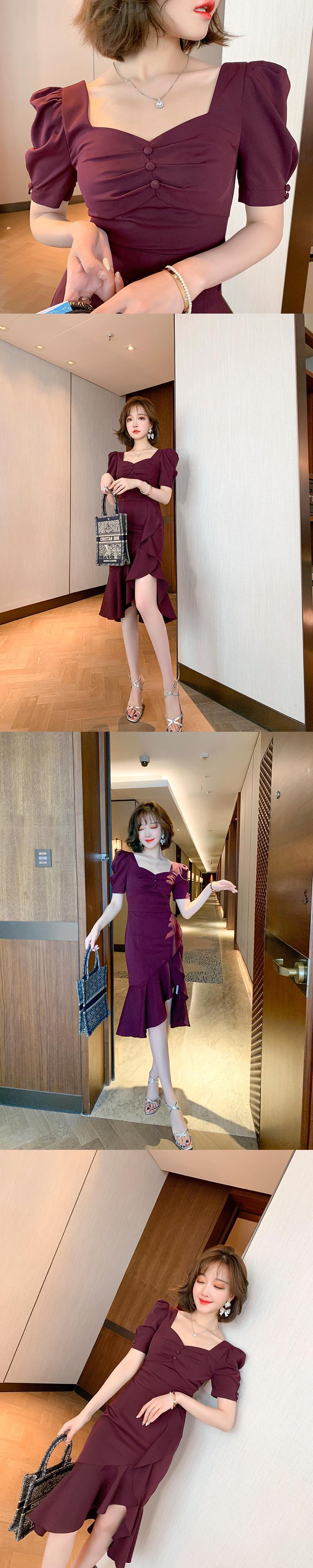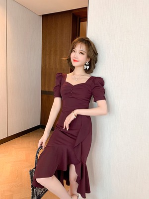 スタイルスタンダードスリーブスリムドレス スプリングサマー レトロ 春物 夏物 MIUCO34355912555