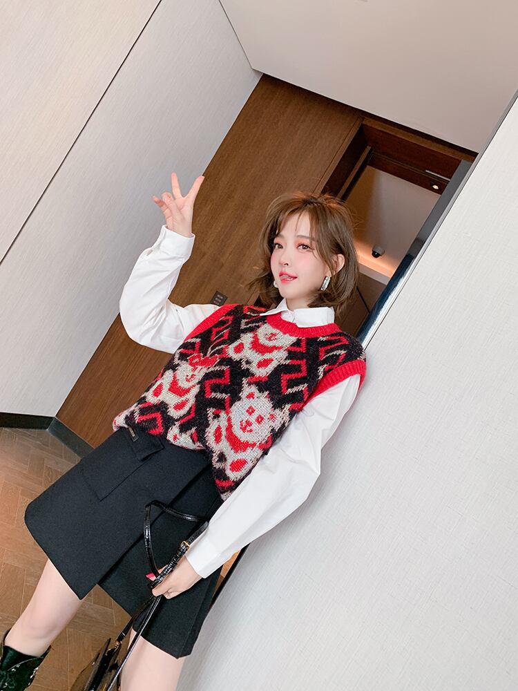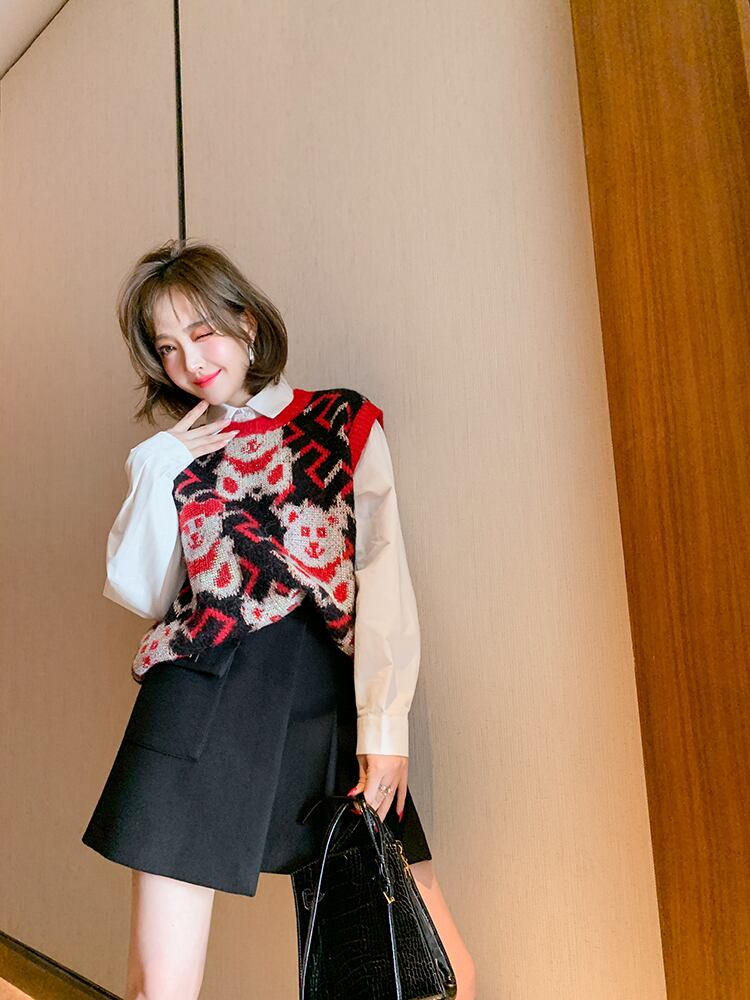 スリーブホワイトシャツ ラウンドネックジャカードニットジャケット レディースウィンター ランタンスリーブ 冬物 Oネック MIUCO4198182075