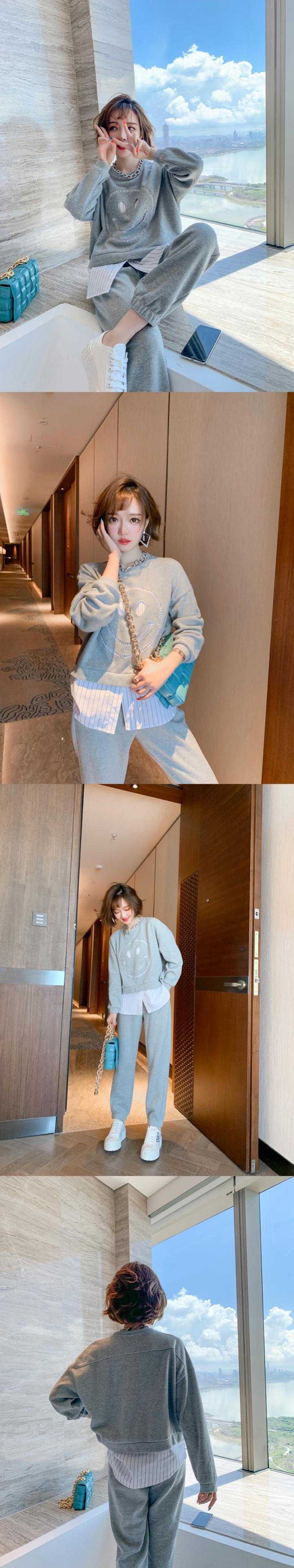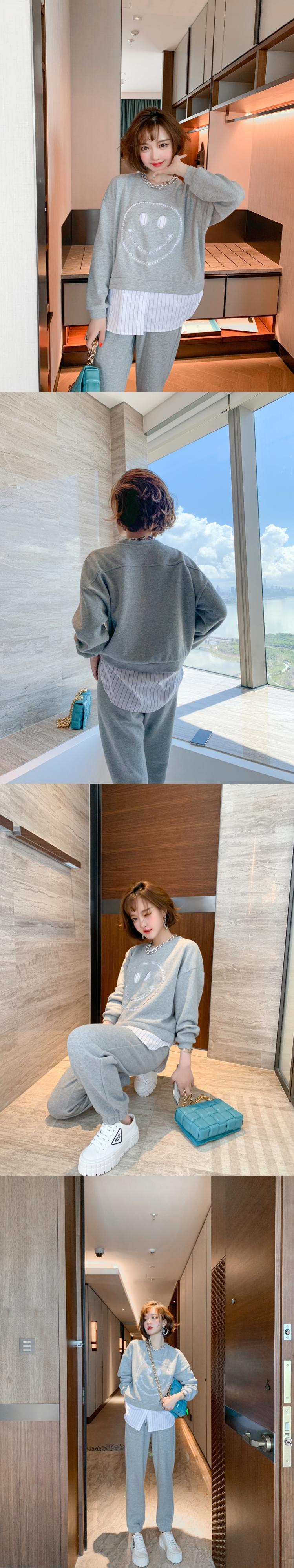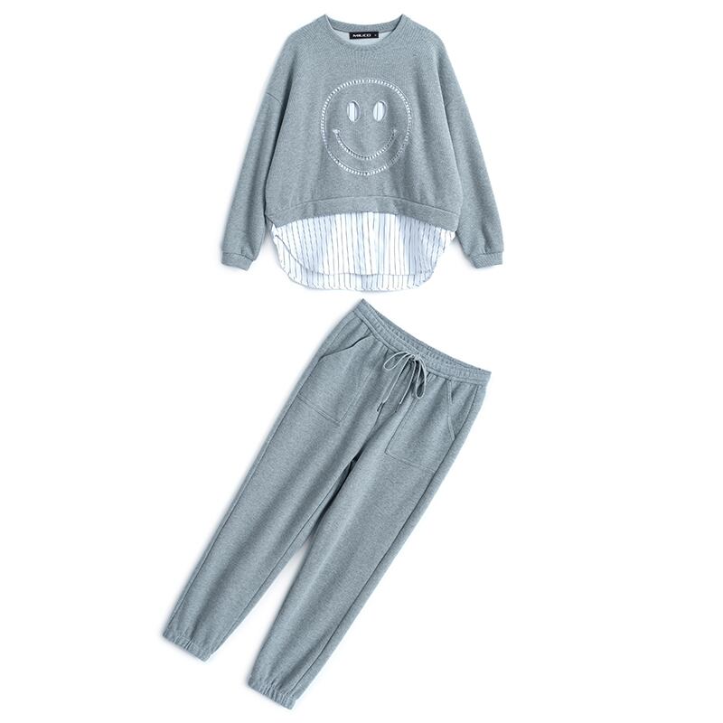 ストライプトップス ギャザーパンツ セット ステッチ MIUCO41642166909