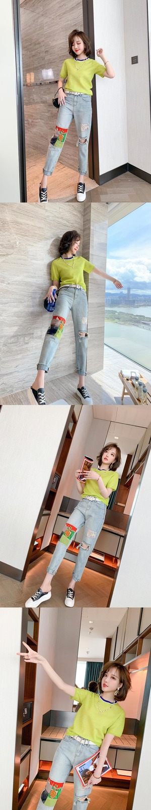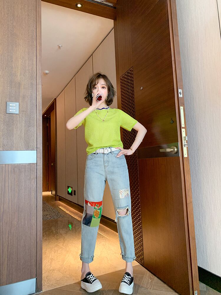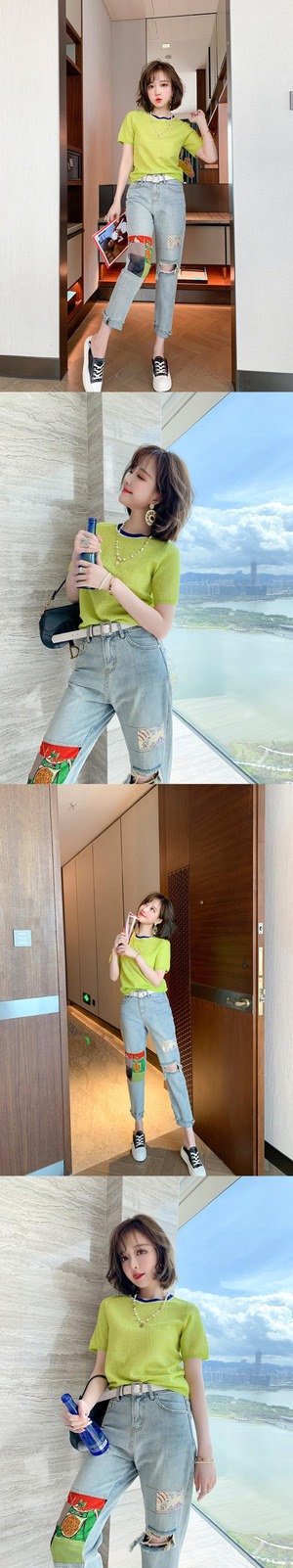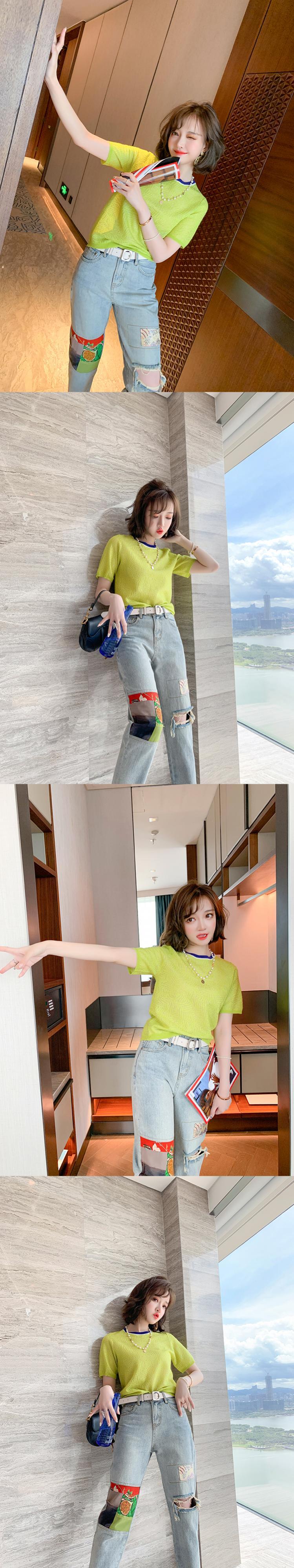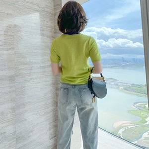 カラーラウンドネックニットセーター トップス スプリング 春物 Oネック MIUCO64263430529