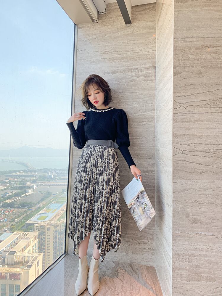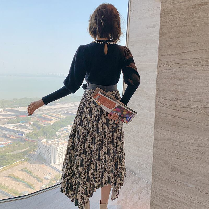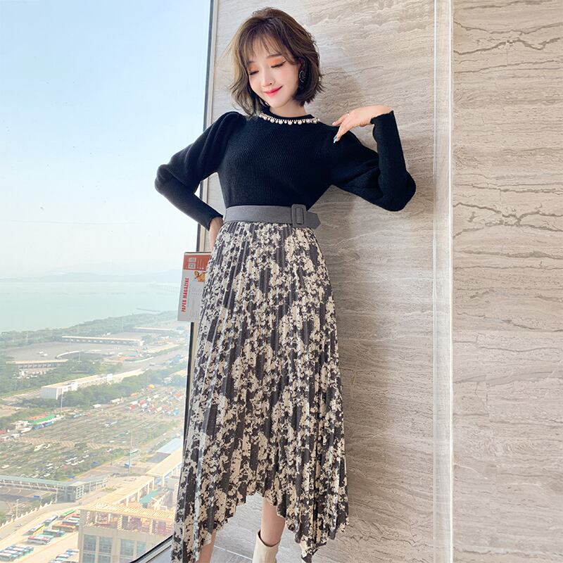 プリントウェスト薄手プリーツスカート ウィンター レッド 冬物 MIUCO16095872940