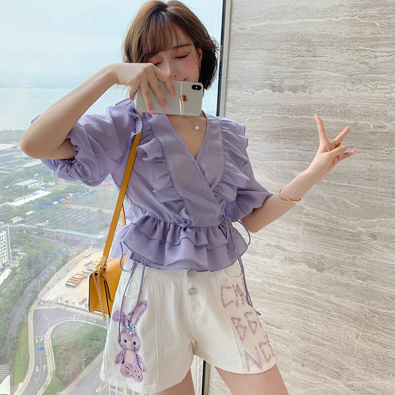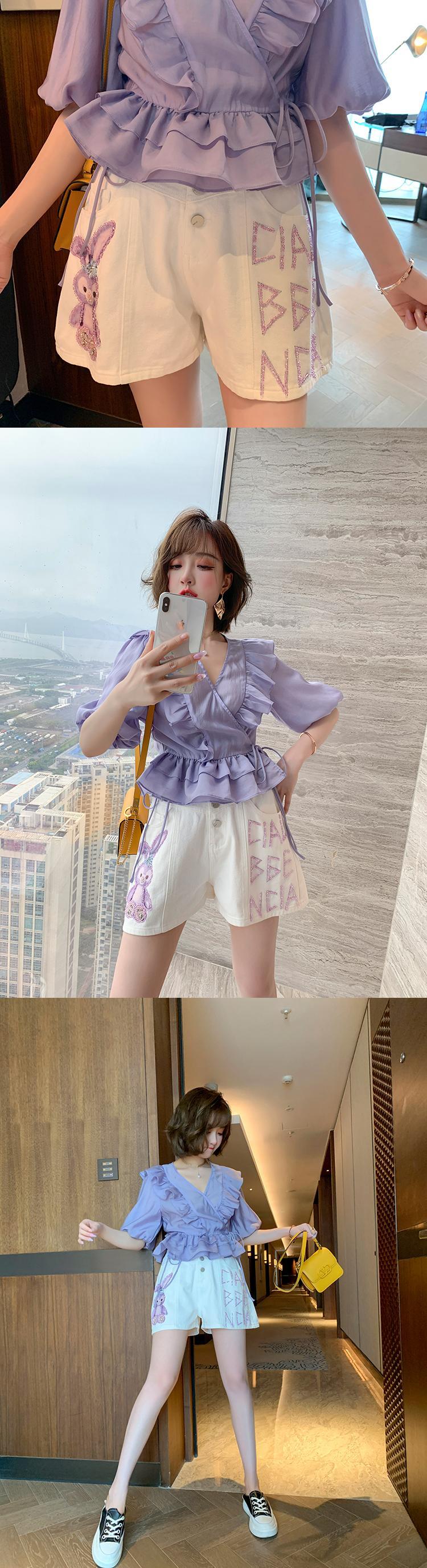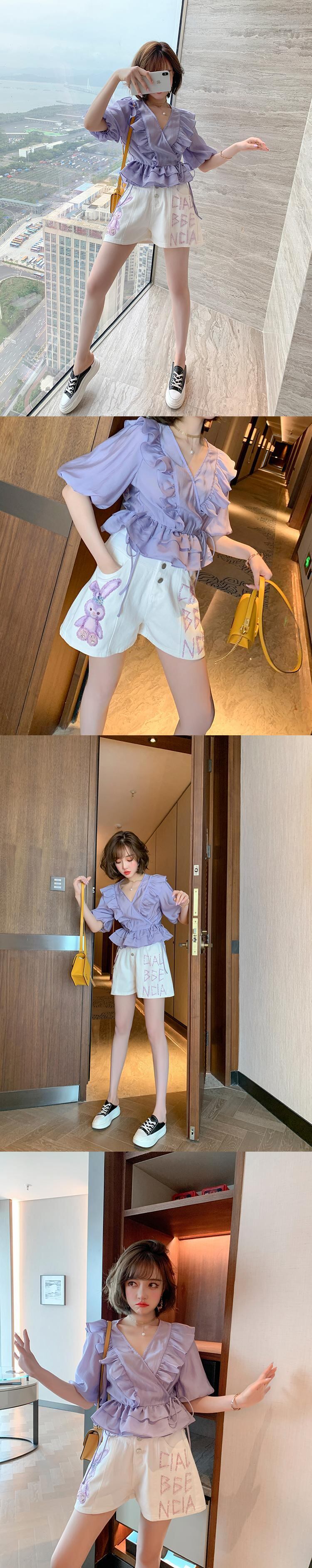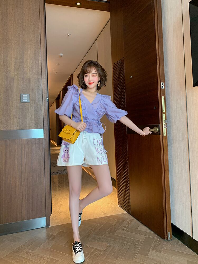 Vネックトップス ショーツ スプリングサマー レース 春物 夏物 ブルマー レースアップ MIUCO95101520195