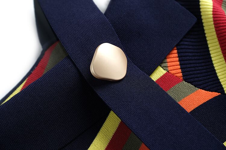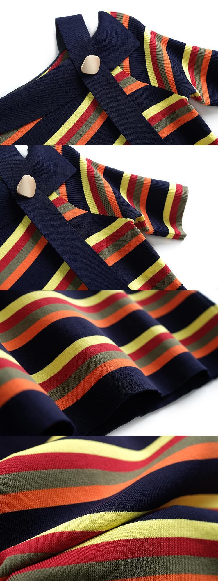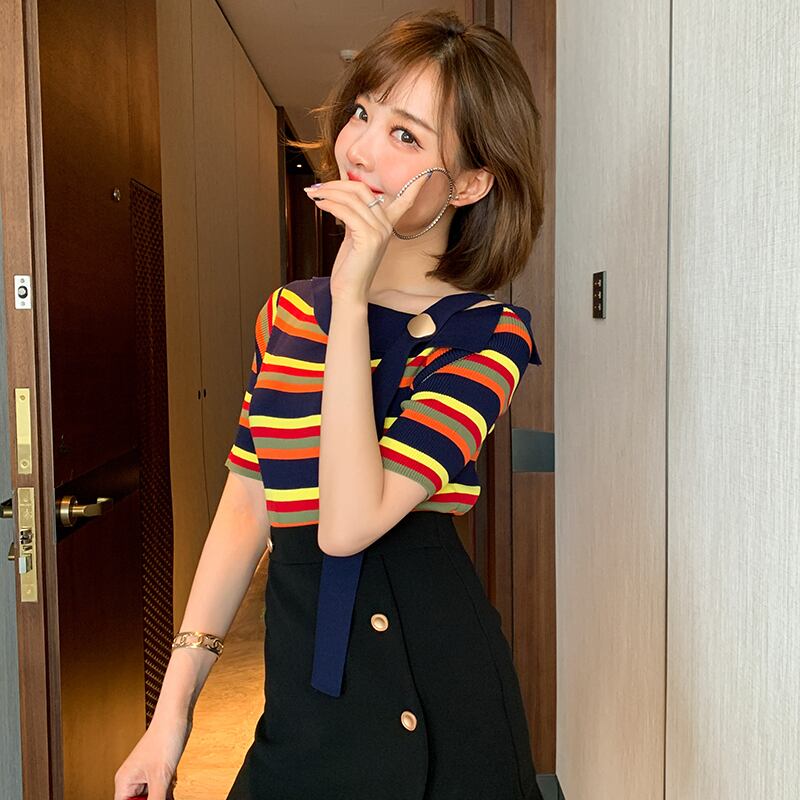 ボタンカラーストライプニットトップス スプリングスタイル 春物 オフショルダー MIUCO34471921615