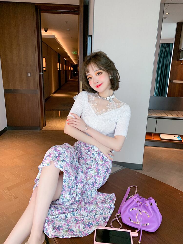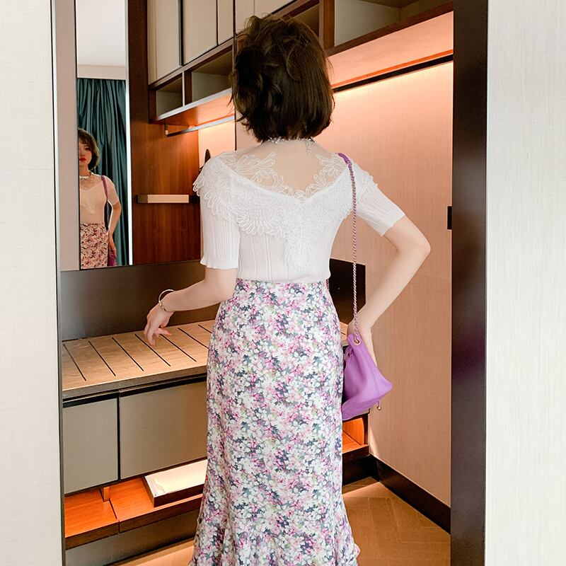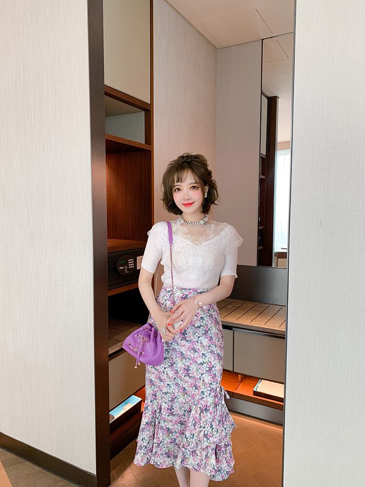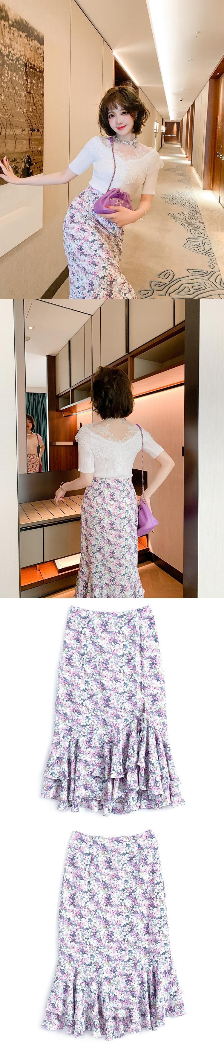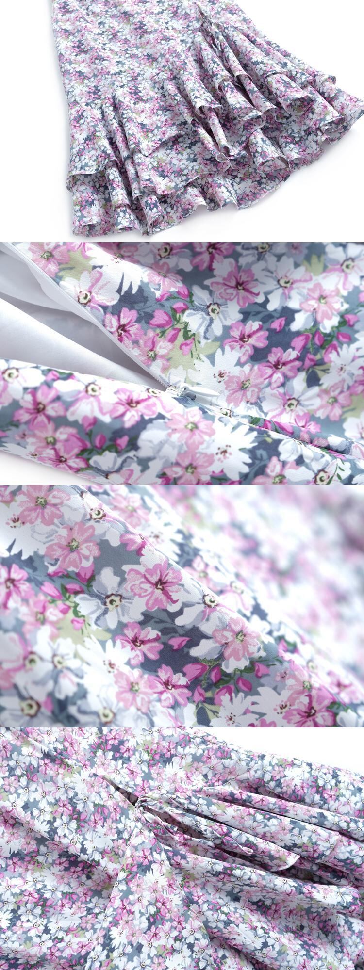 ハイウェストフローラルスカート スプリングサマー 春物 夏物 花柄 ステッチ MIUCO83690052562