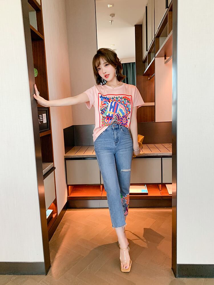 ラインストーンウェスト薄手パンツ ジーンズ サマースタイル 夏物 MIUCO3653230672