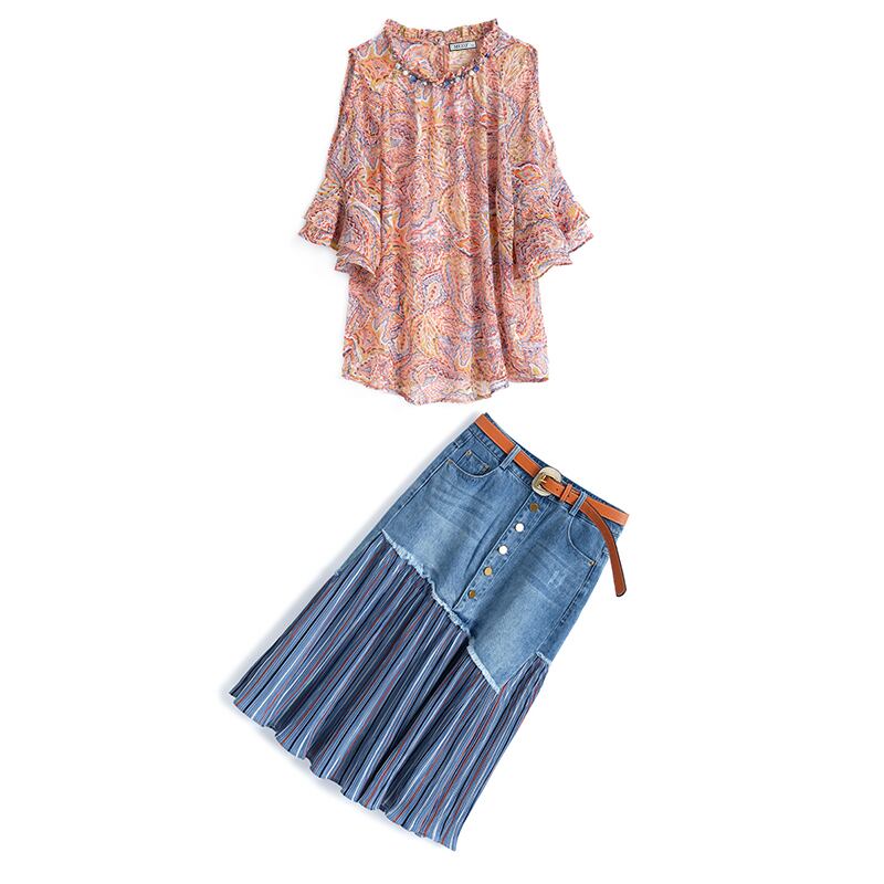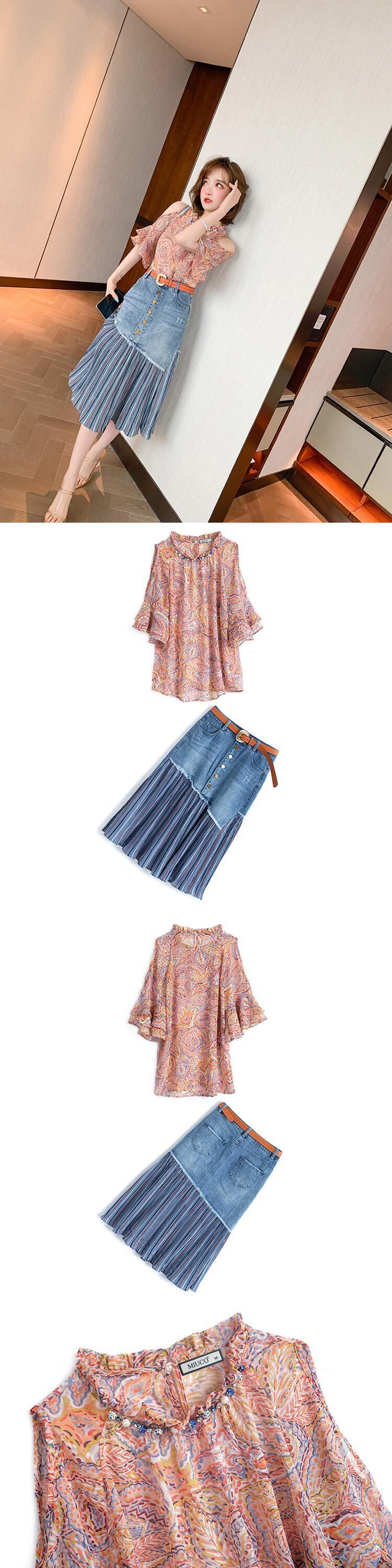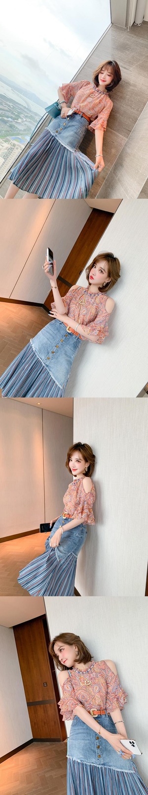 スリーブトップス ストライプスカート オータム レッド 秋物 ステッチ MIUCO69901047946