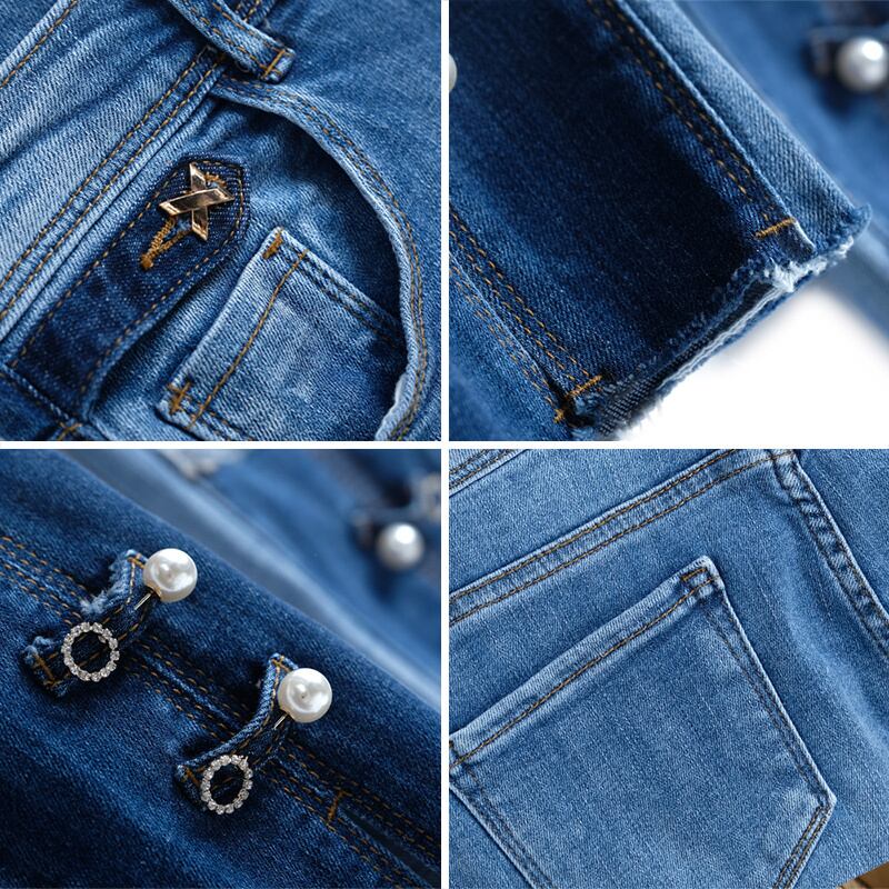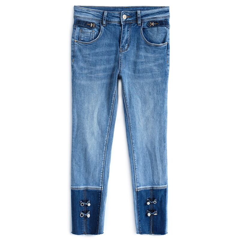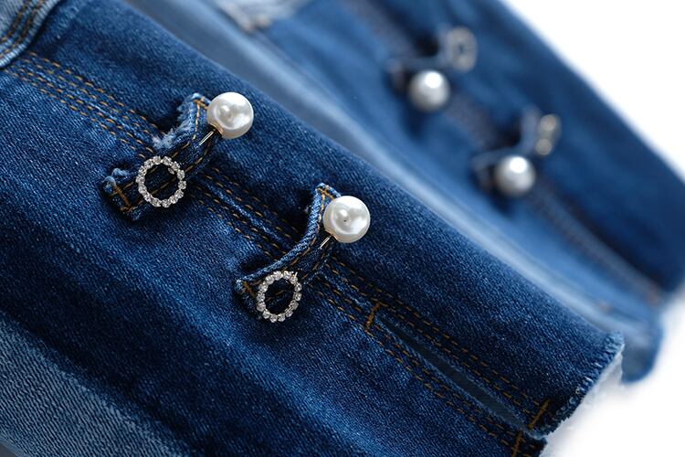 パールバックルスリムクロップドジーンズ スプリング 春物 真珠 ステッチ MIUCO89417899638