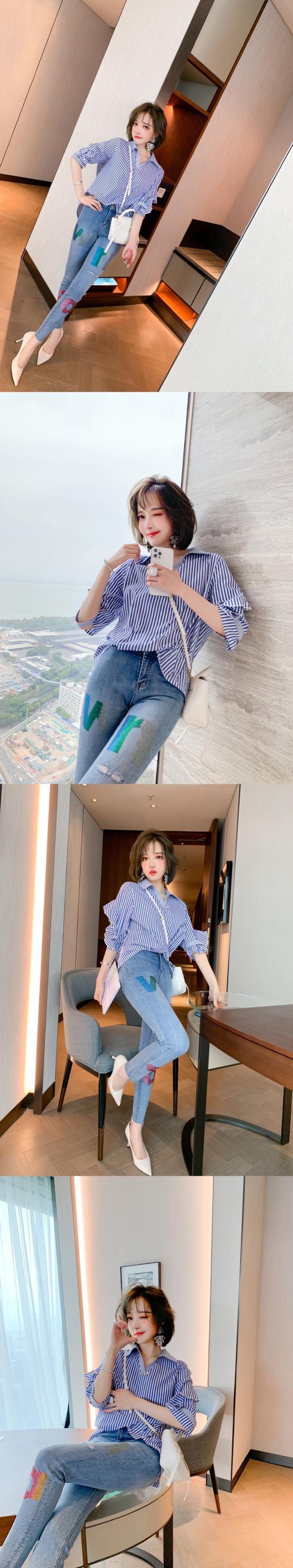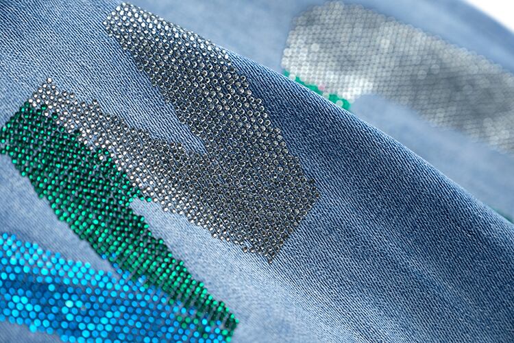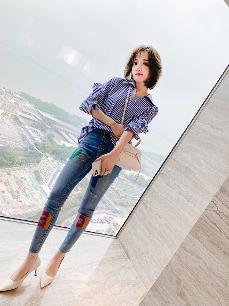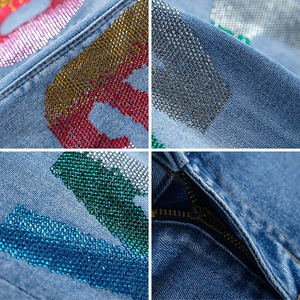 カラーラインストーンスリムウェスト薄手ジーンズ スプリング 春物 MIUCO76945341778