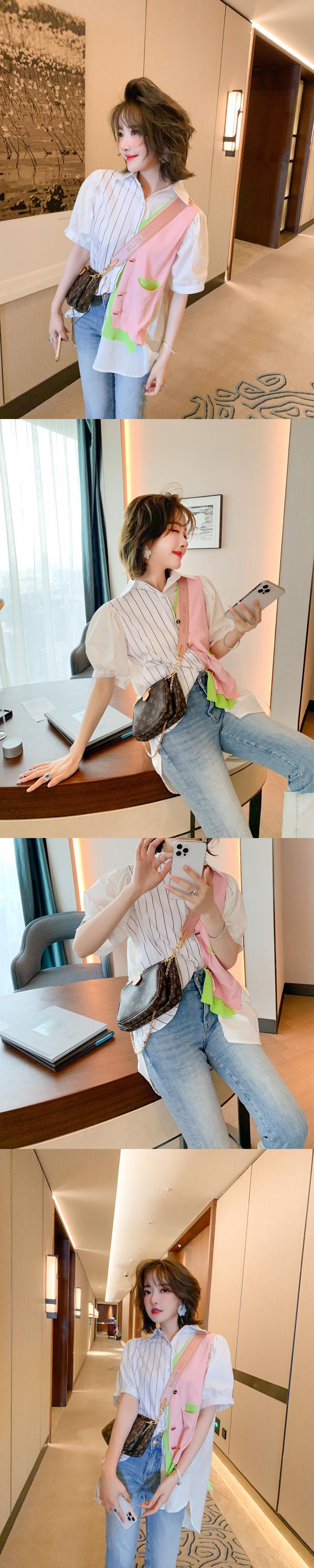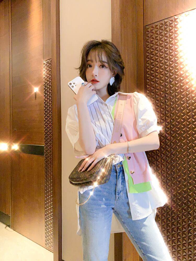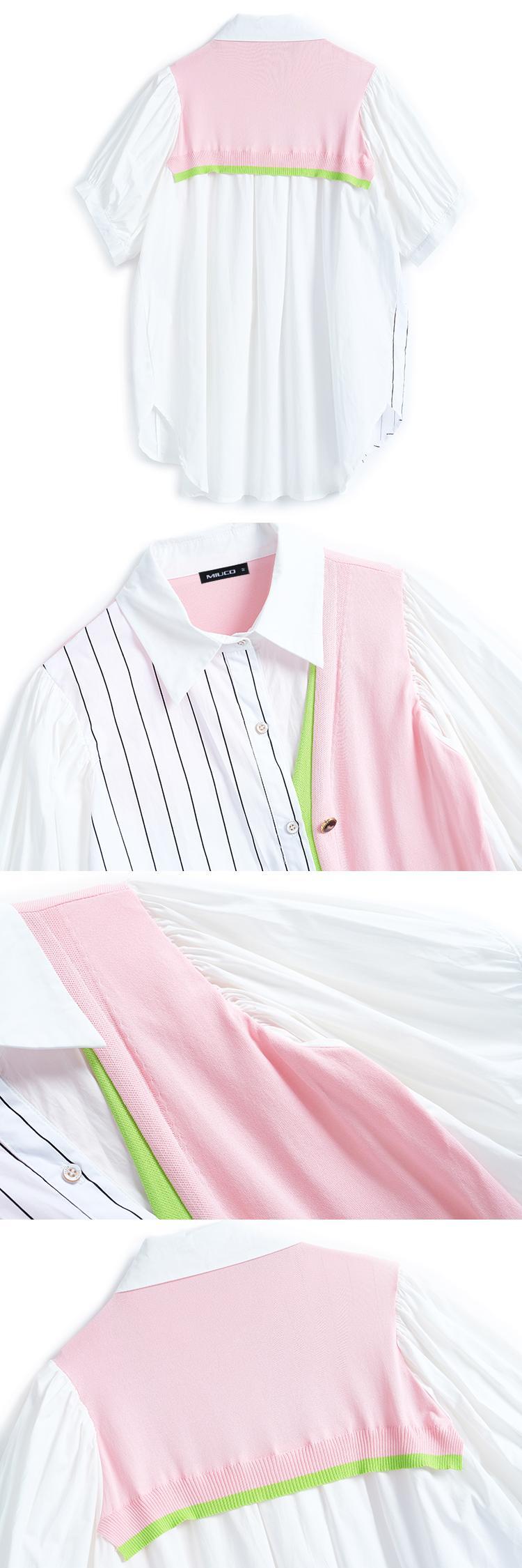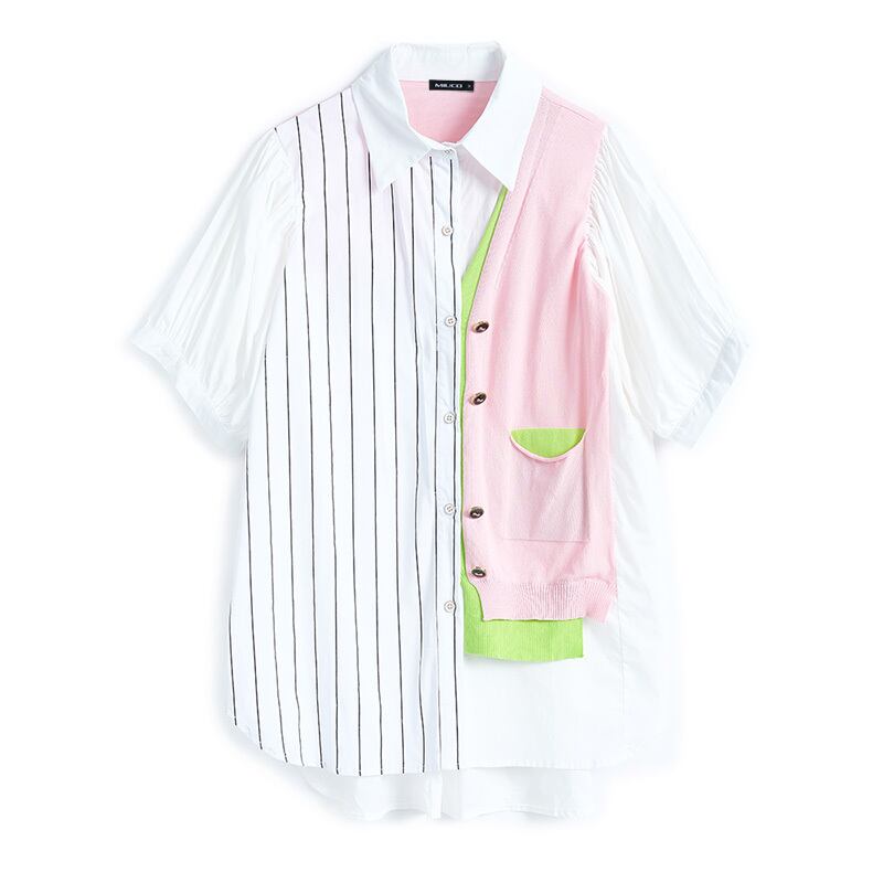 カラーストライプニットスタイルシャツ サマー 夏物 ステッチ MIUCO77521651892