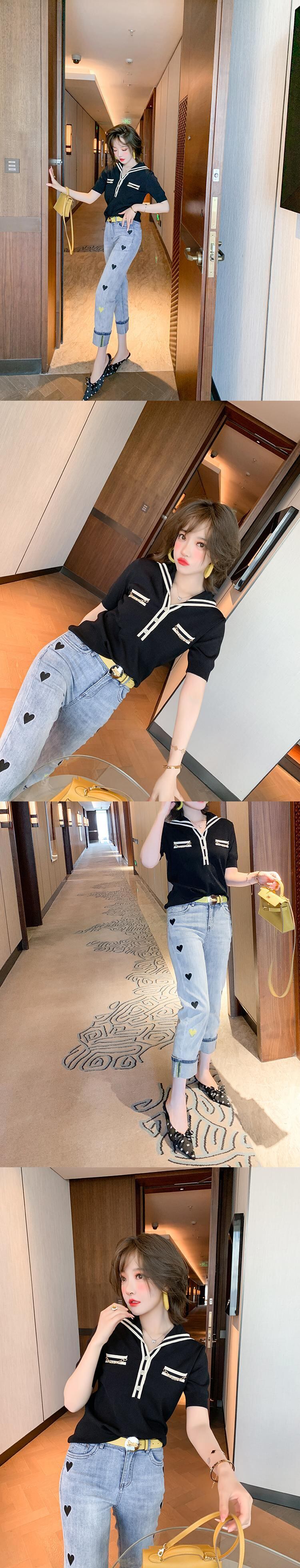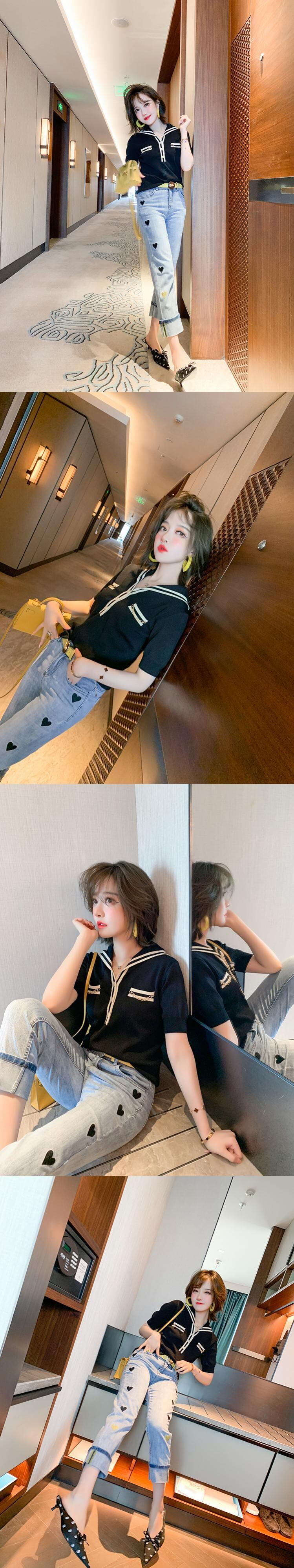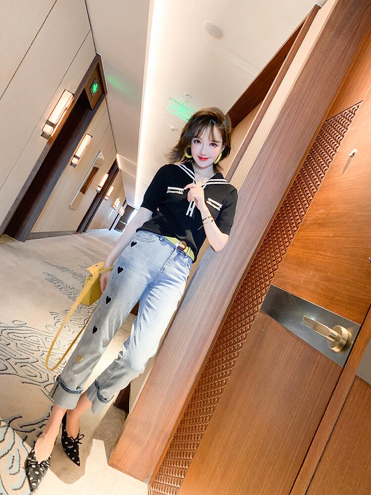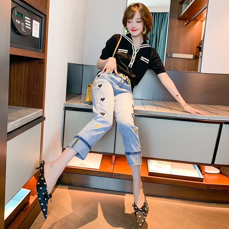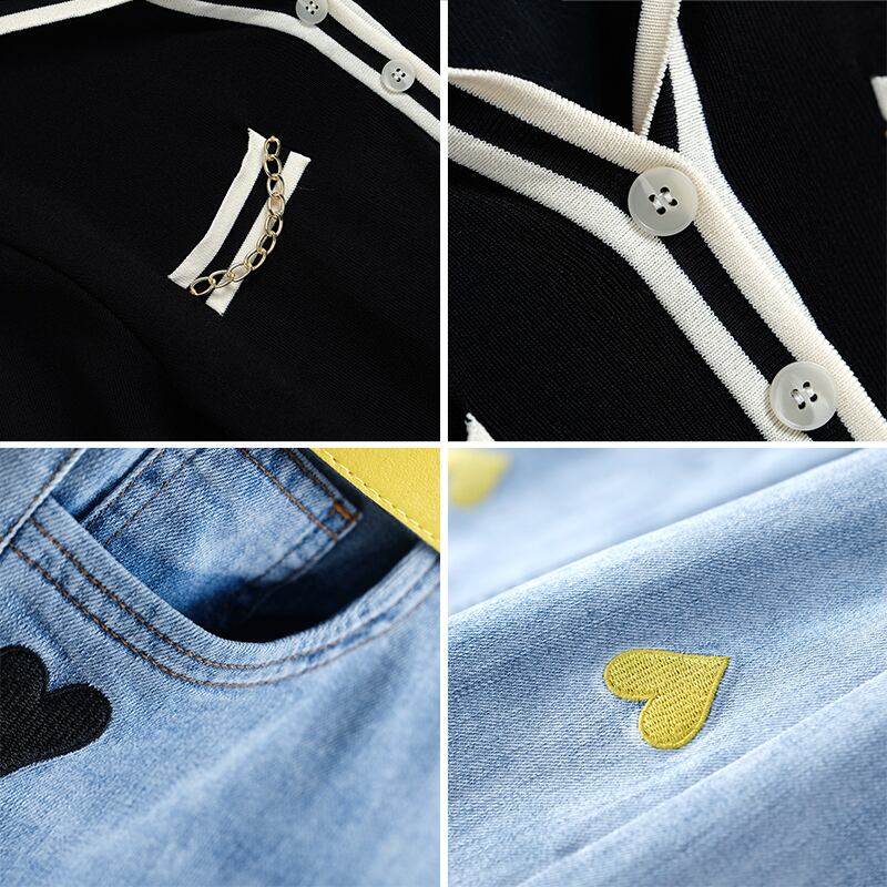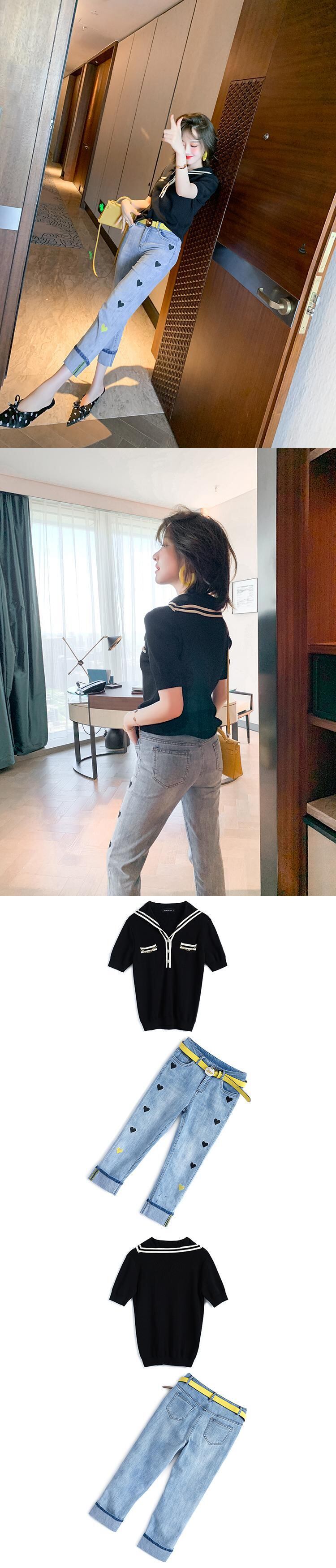 ストライプニット ジーンズ セット サマー レッド 刺繍 夏物 MIUCO31526463819