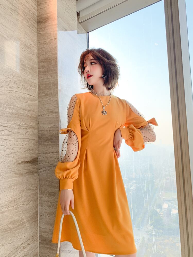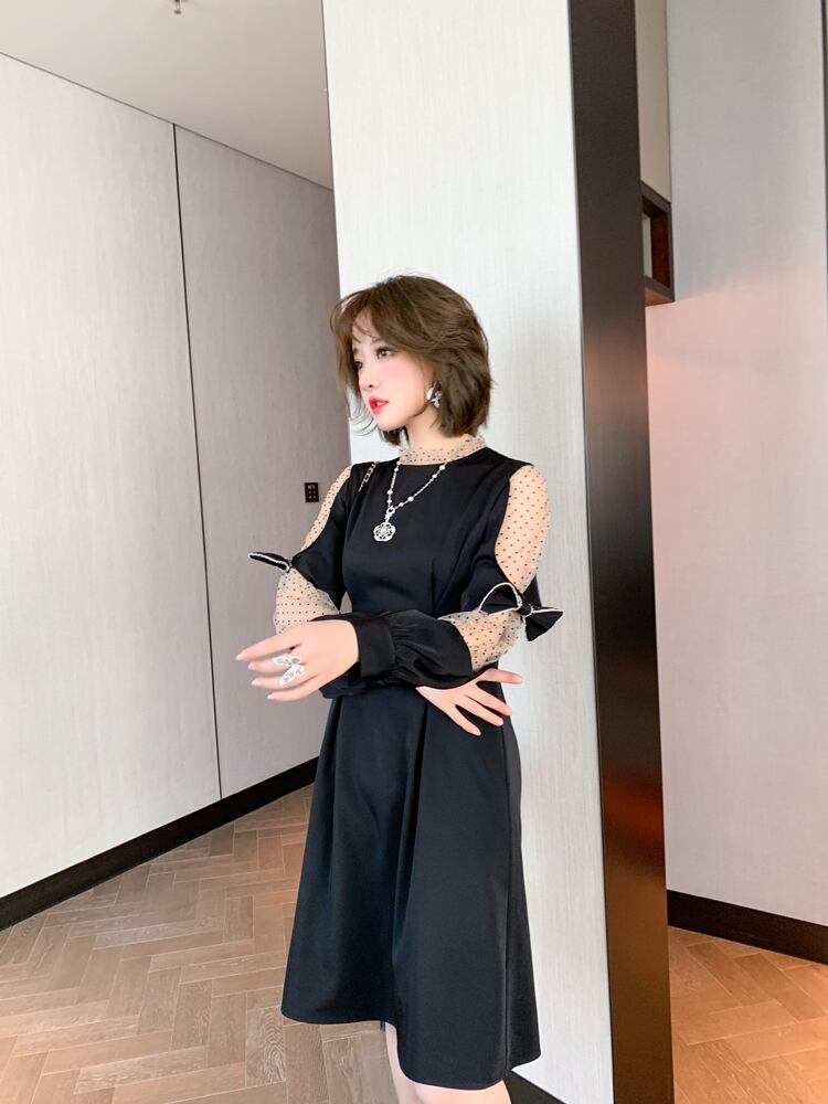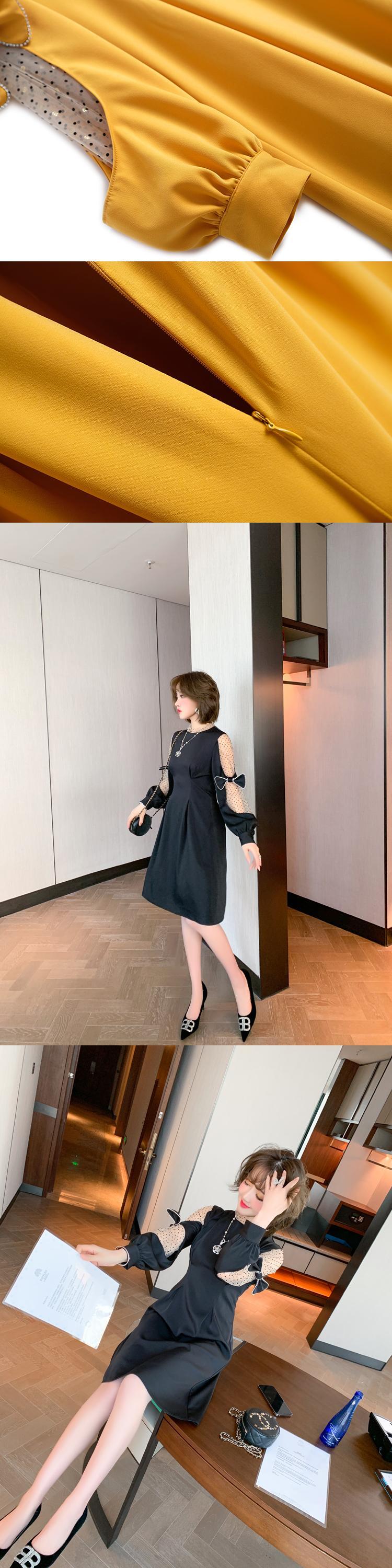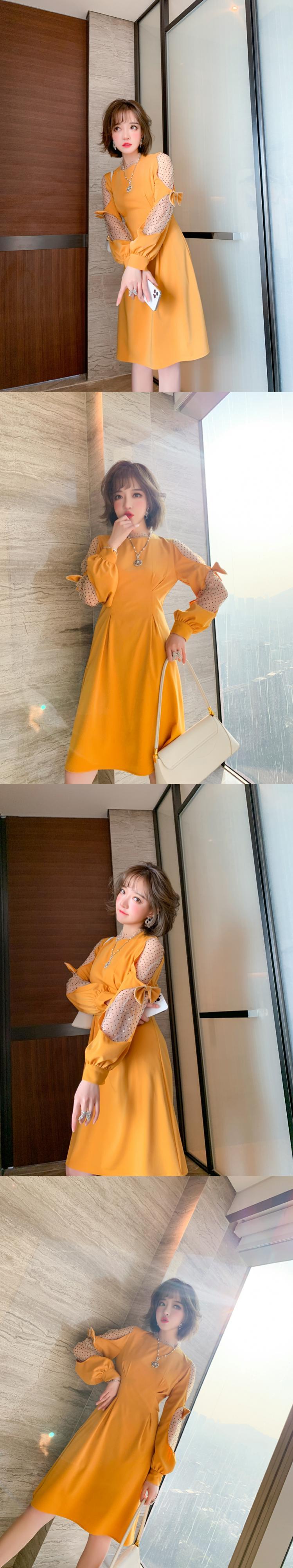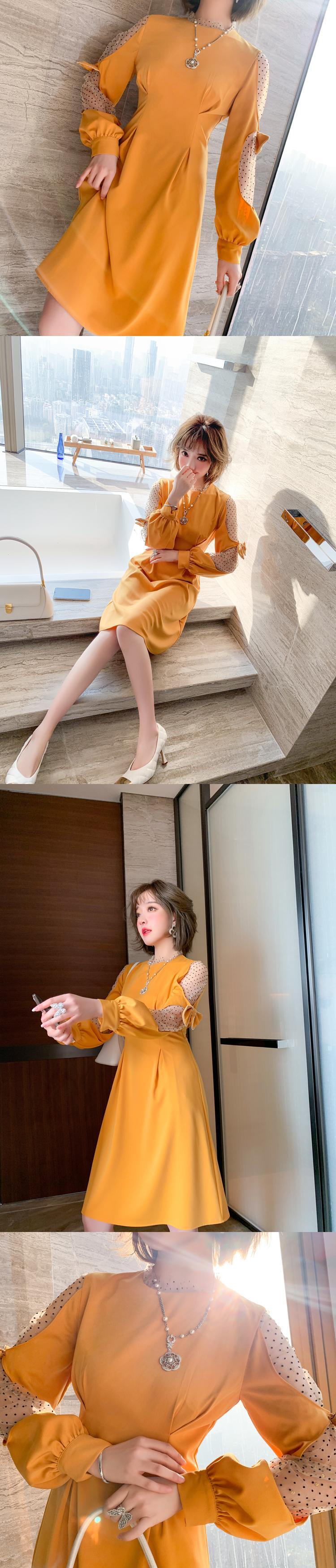 水玉ウェストスリムドレス スプリング リボン 春物 MIUCO45074980542