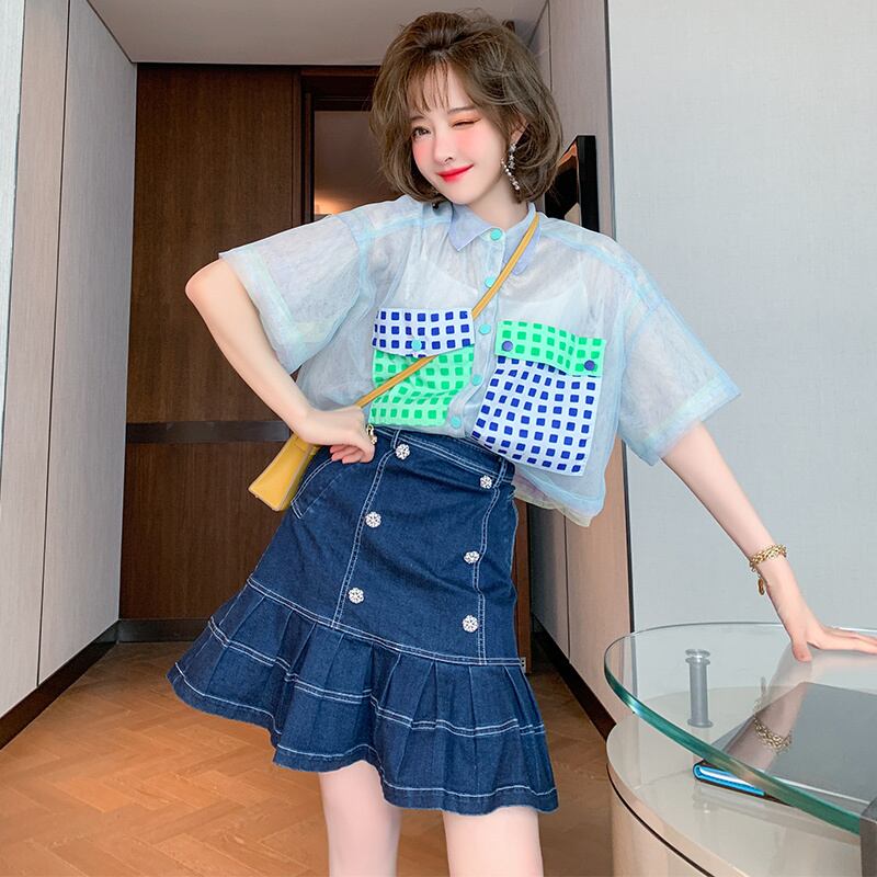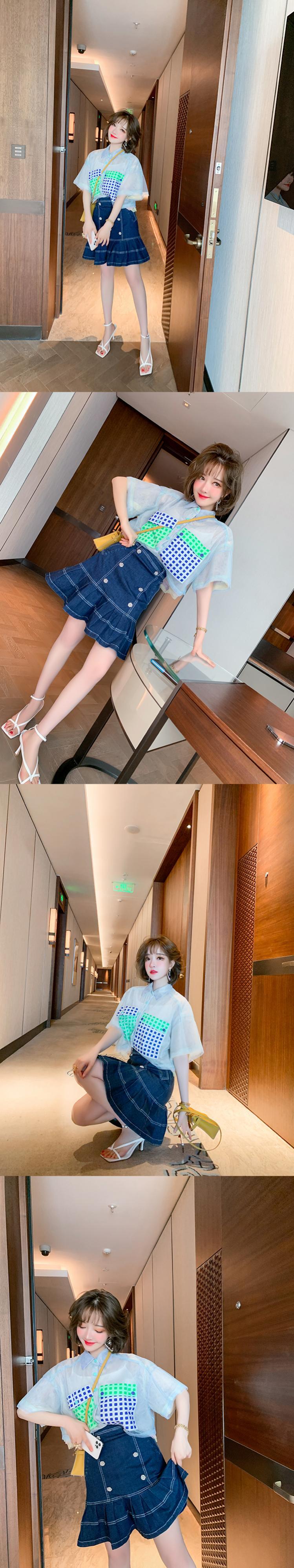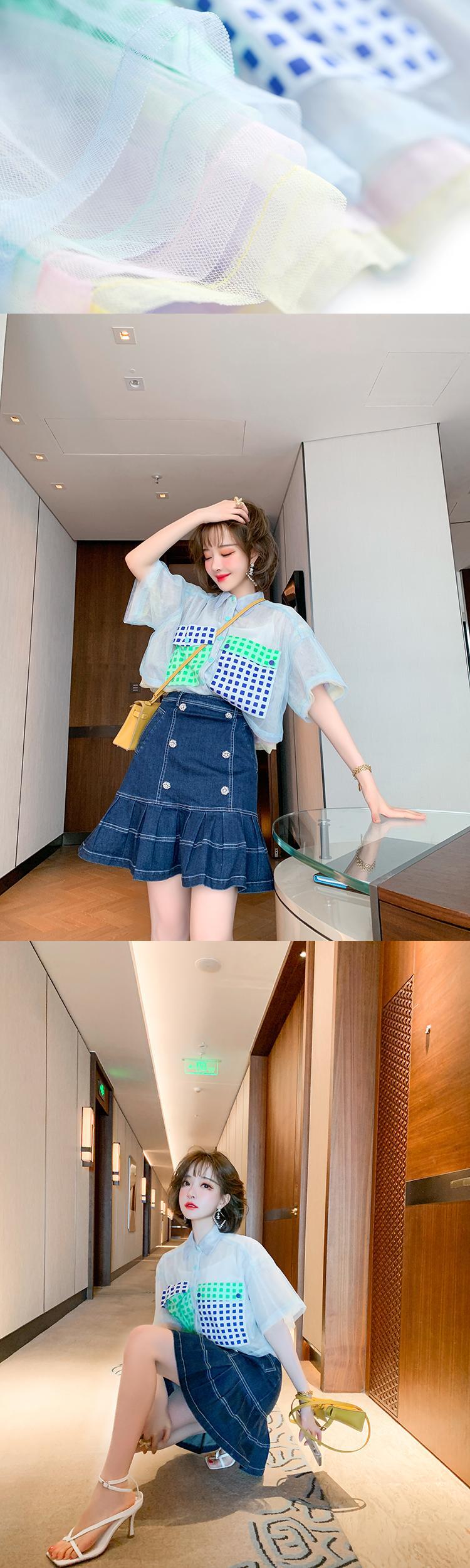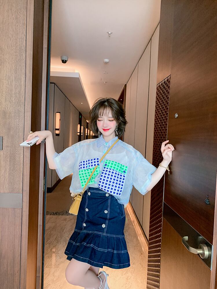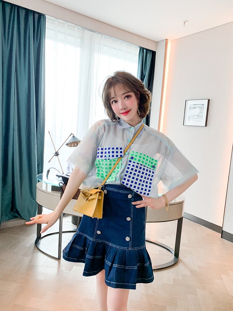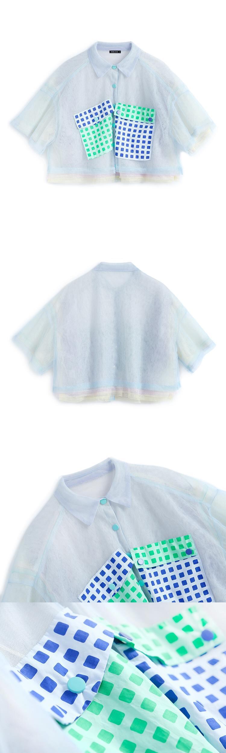 メッシュカラー格子柄ポケットシャツ スプリングサマー レッド 春物 夏物 MIUCO16495690912