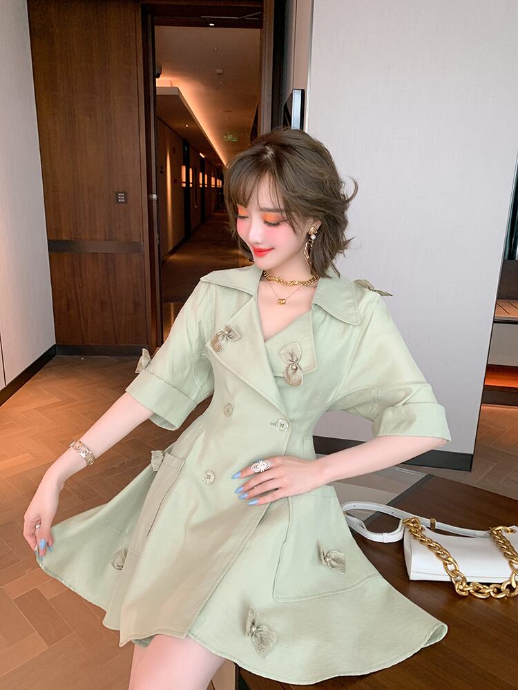 ウェストダブルブレストコート ドレス オータム リボン 秋物 MIUCO70428438822