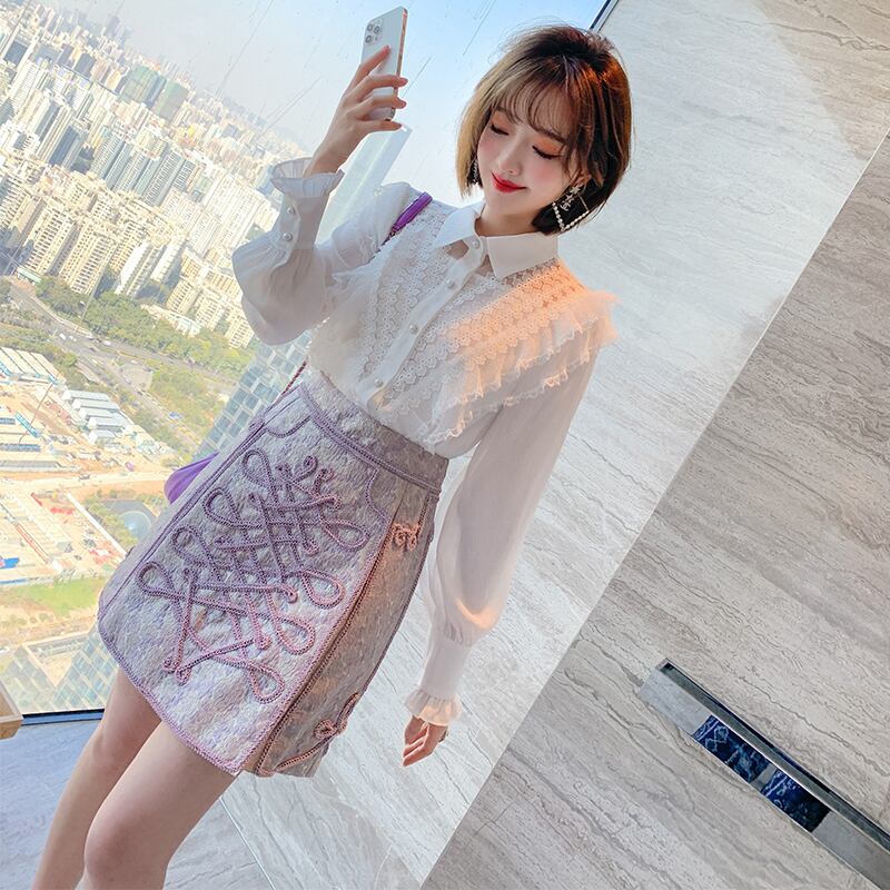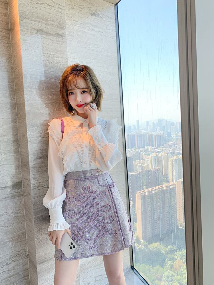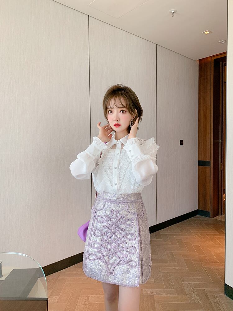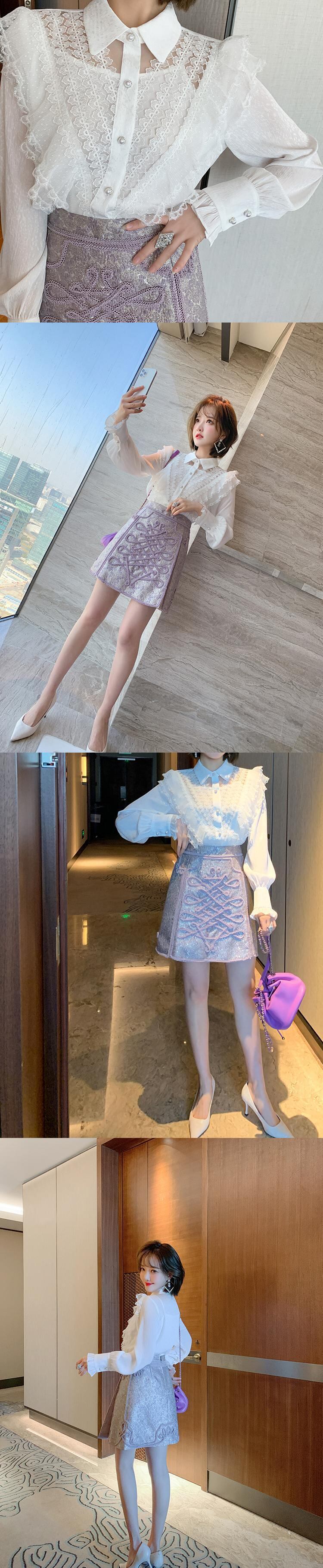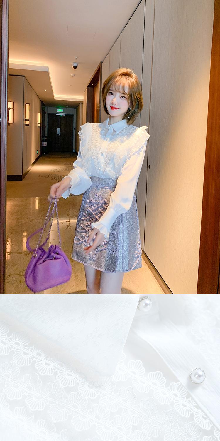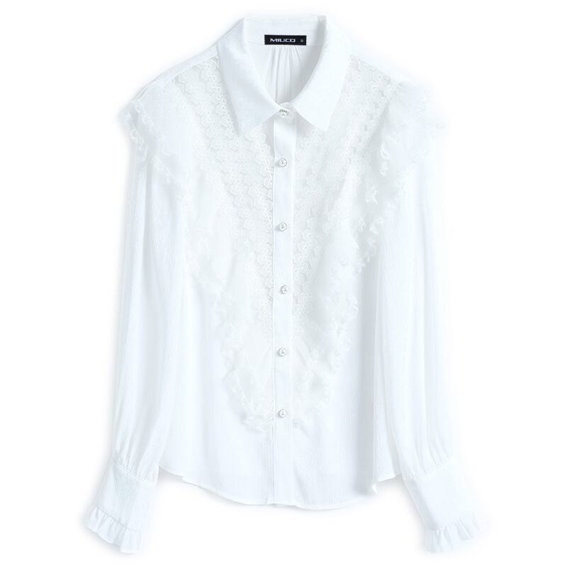 レースカラーシャツ スプリング 大人ガーリー スウィート キュート カジュアル 春物 ピュア ステッチ MIUCO59434057655