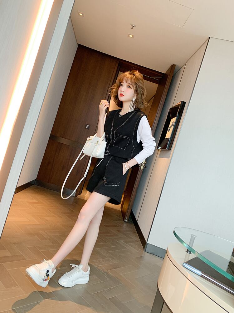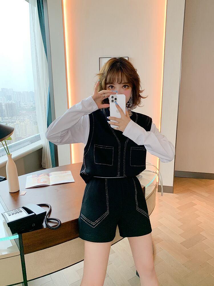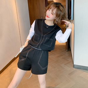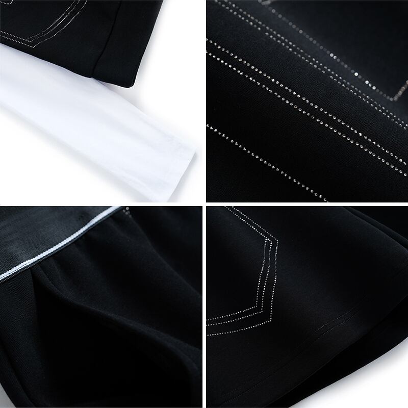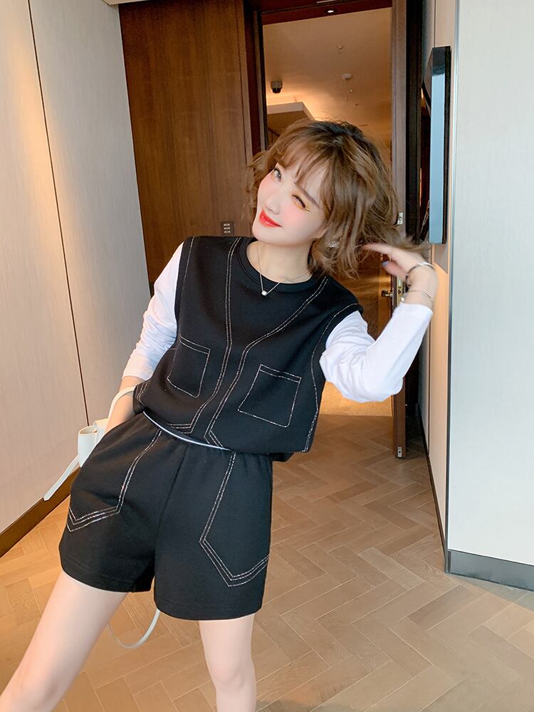 カラーラインストーンツーピース スウェット ウェスト薄手ショーツ セット オータム 秋物 ブルマー ステッチ MIUCO28969866820