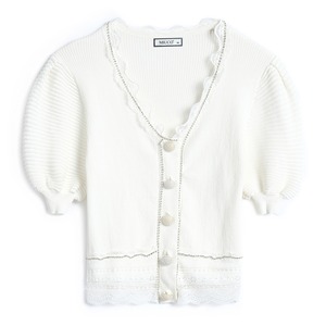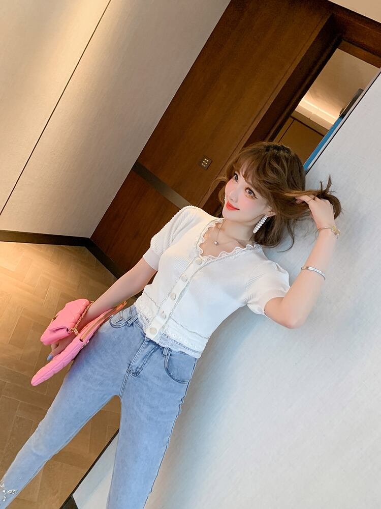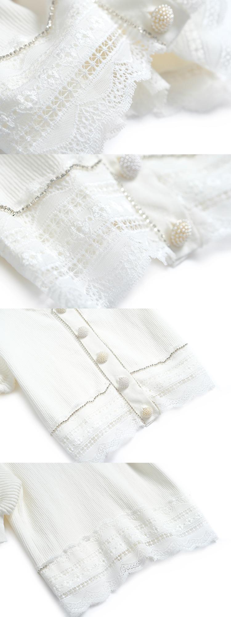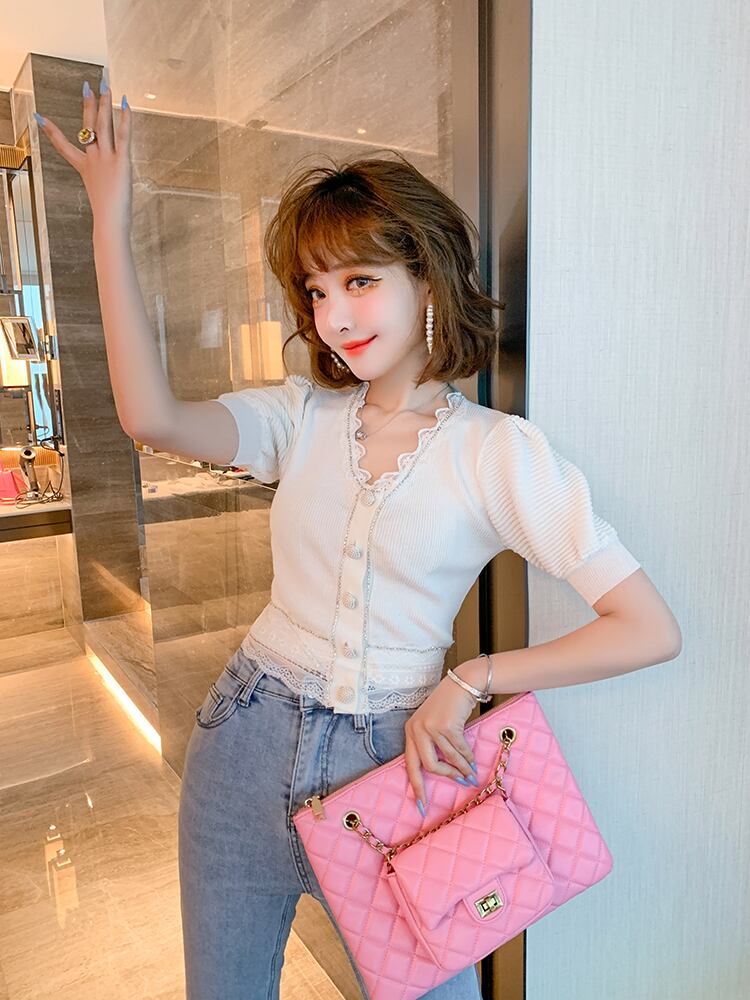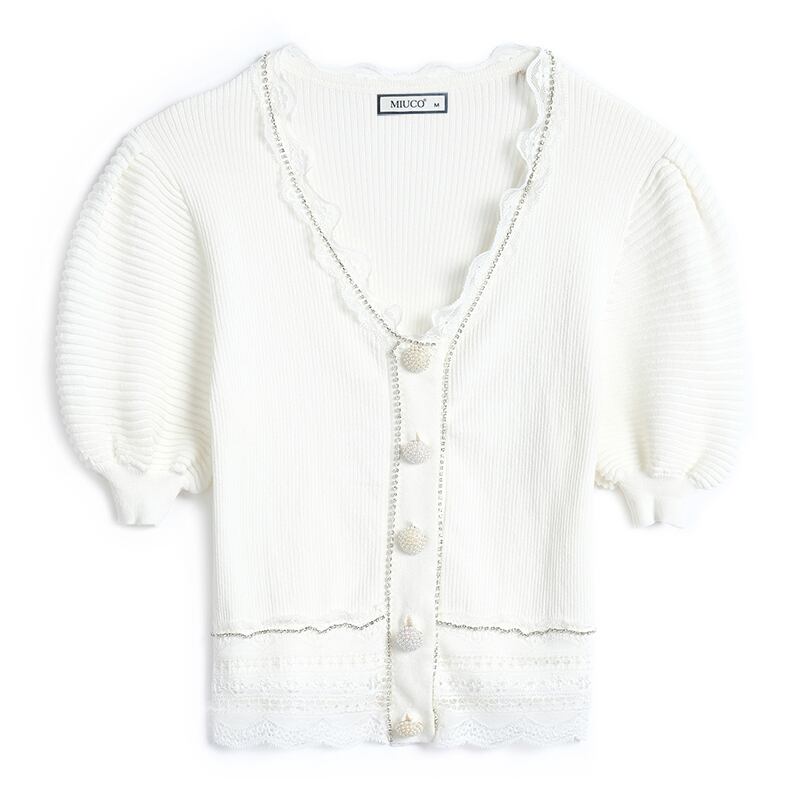 VネックレースショートニットTシャツ オータム 秋物 MIUCO18826560169