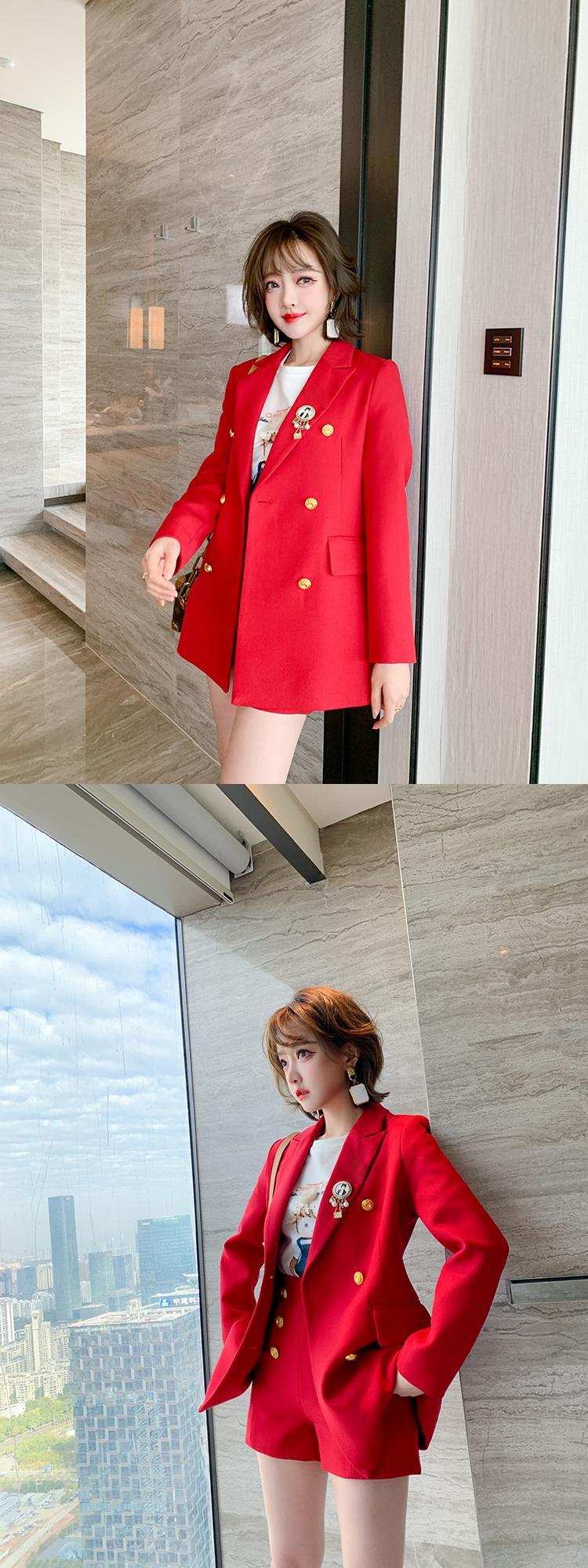 ソリッド カラージャケット ダブルブレストショーツ スプリング 春物 ブルマー ソリッドカラー MIUCO7353662398