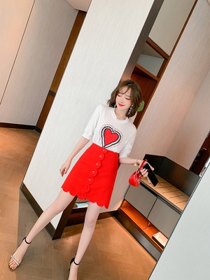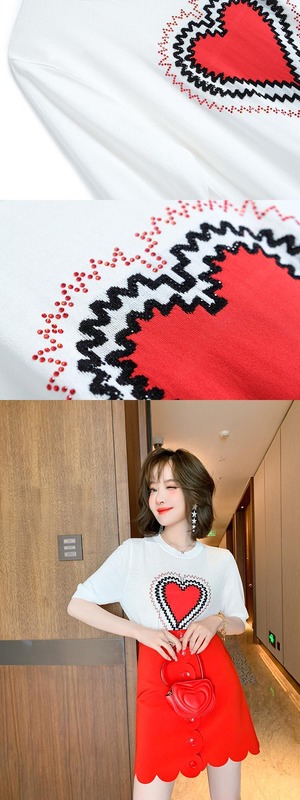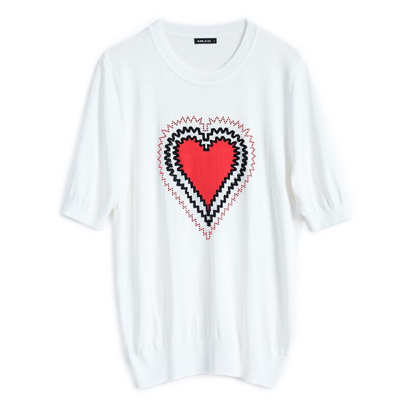 ジャカードニットラウンドネックスリーブTシャツ サマー 大人ガーリー スウィート キュート カジュアル 夏物 Oネック MIUCO12207002118