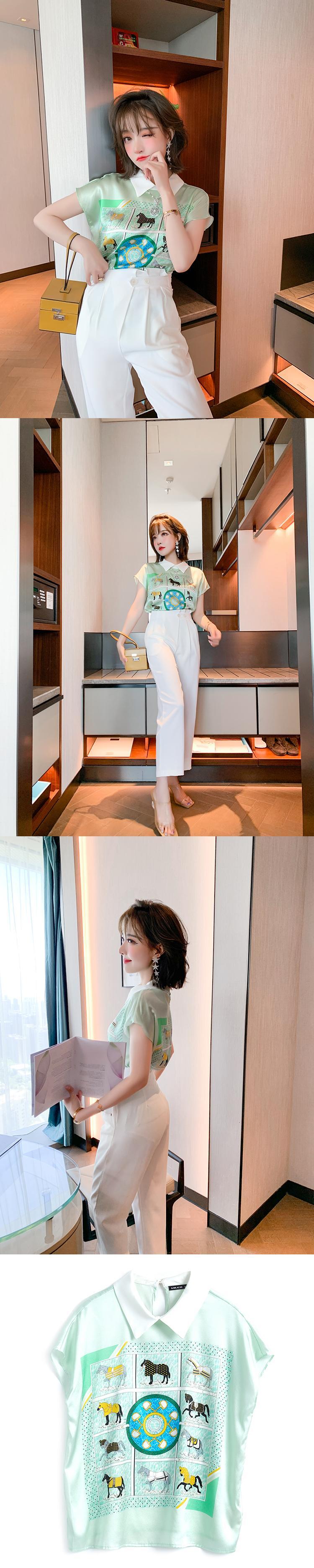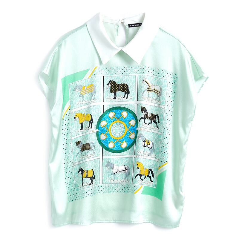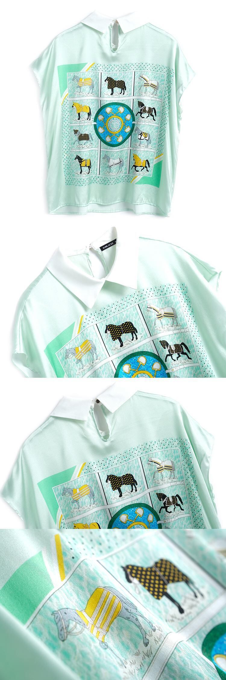 スタンダードプリント柄カラースリーブシャツ サマー レトロ 夏物 シルキー MIUCO1051884971