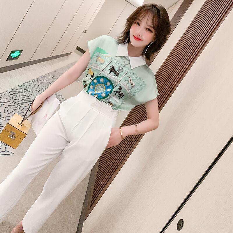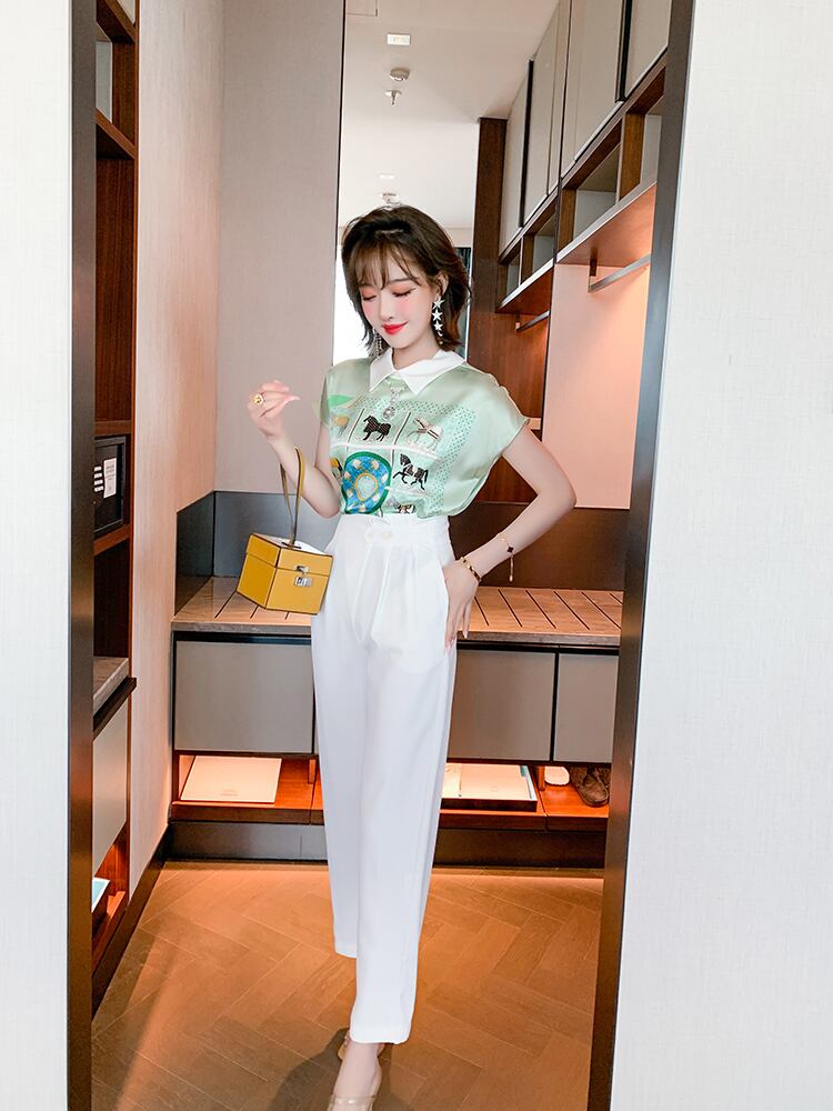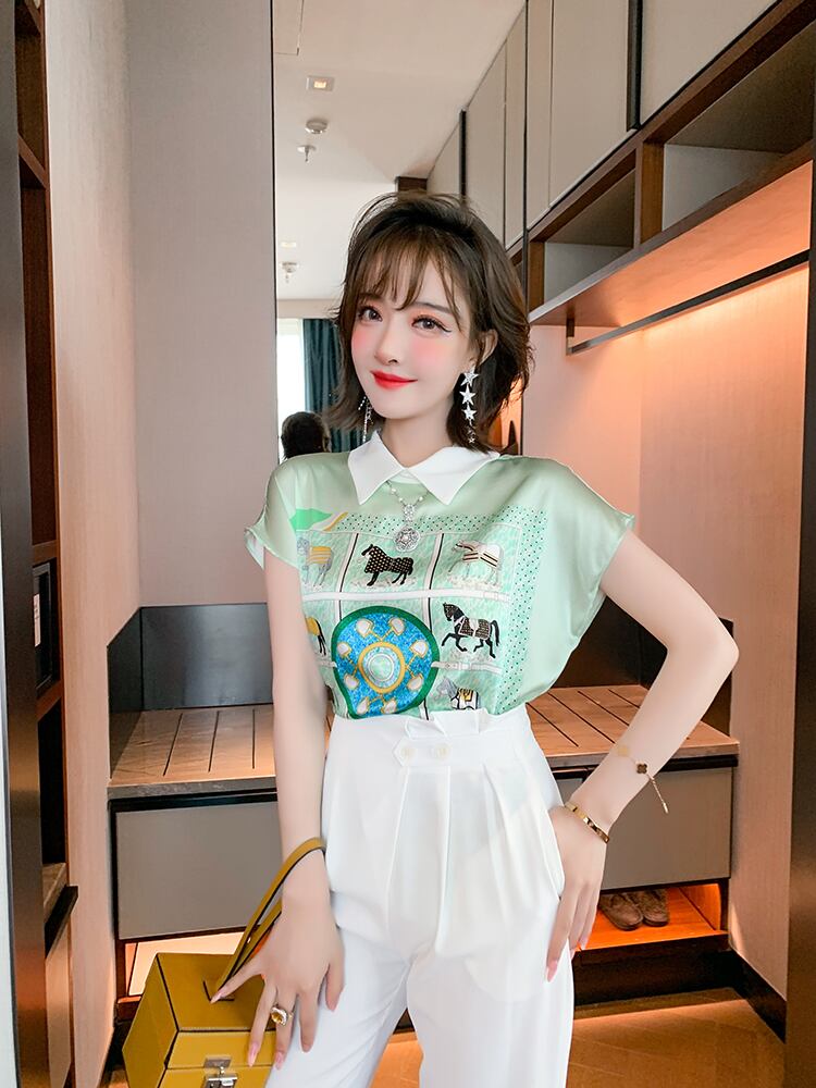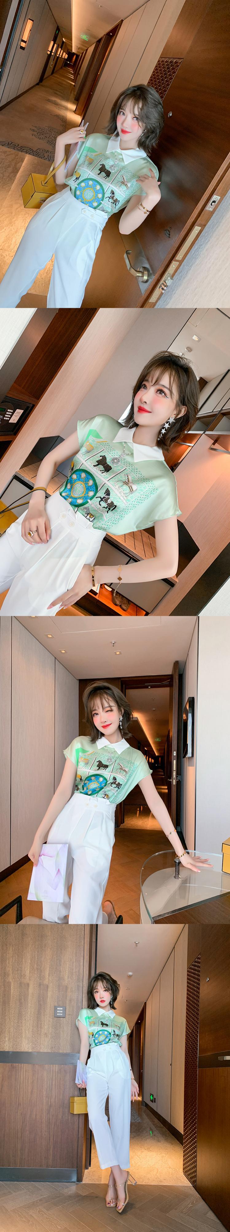 スタンダードプリント柄カラースリーブシャツ サマー レトロ 夏物 シルキー MIUCO1051884971