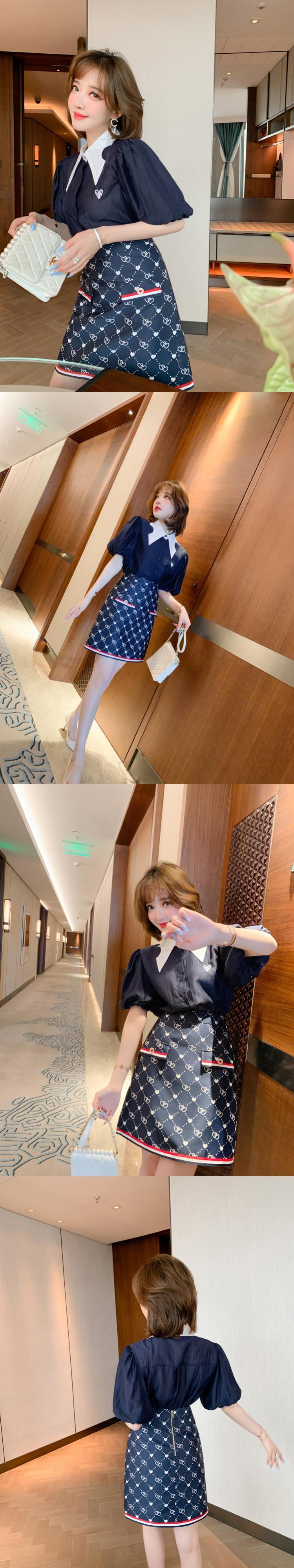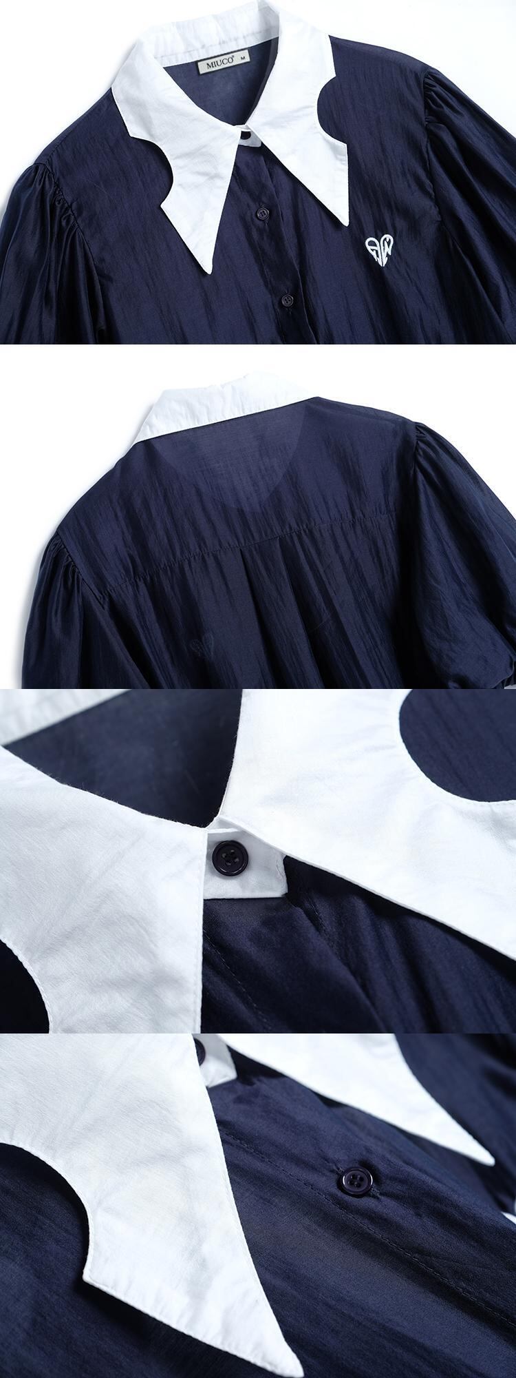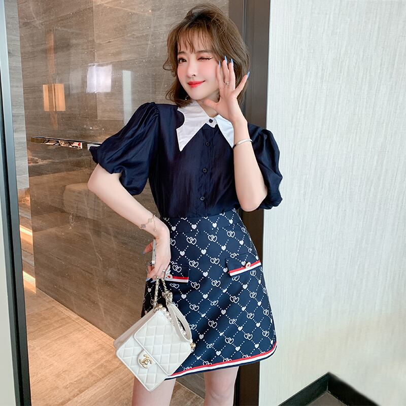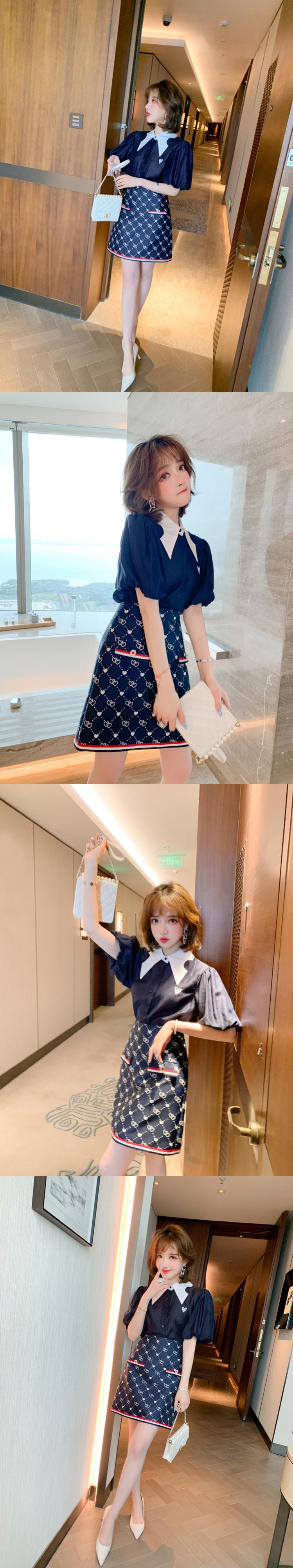 スリーブシャツ ストライプAラインスカート セット オータム レッド 刺繍 秋物 MIUCO75946674983