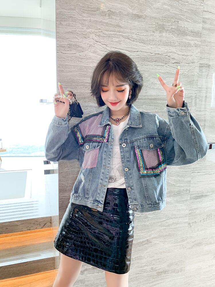 スタンダードカラールーズショートジャケット オータム レトロ 秋物 ステッチ MIUCO27904135073