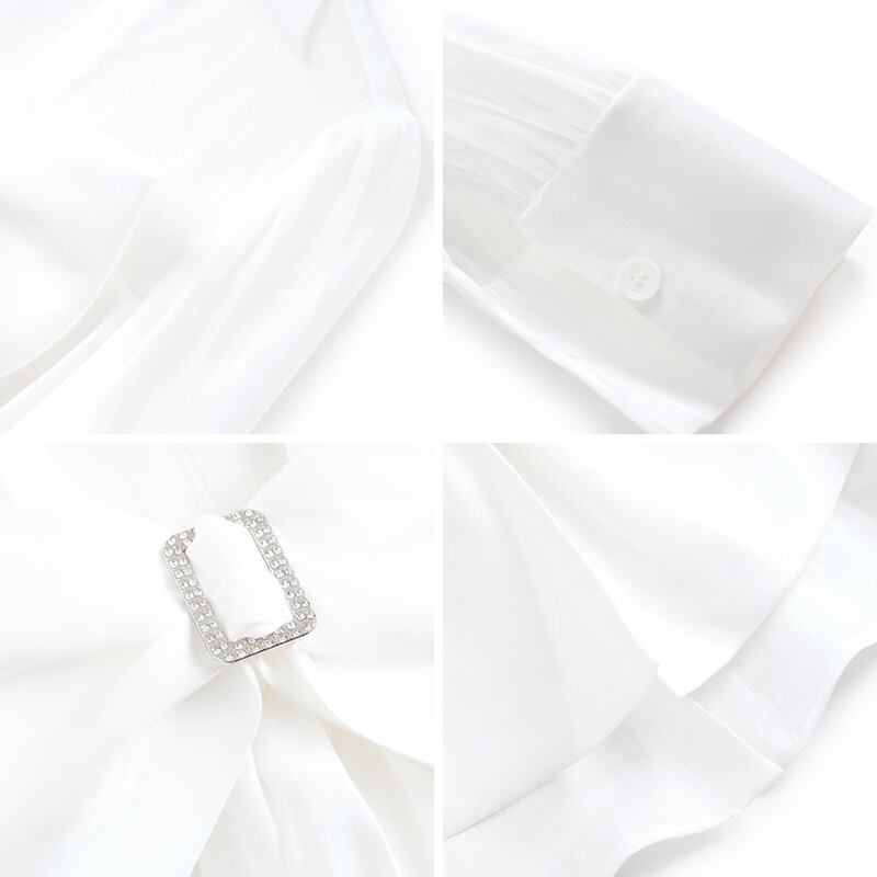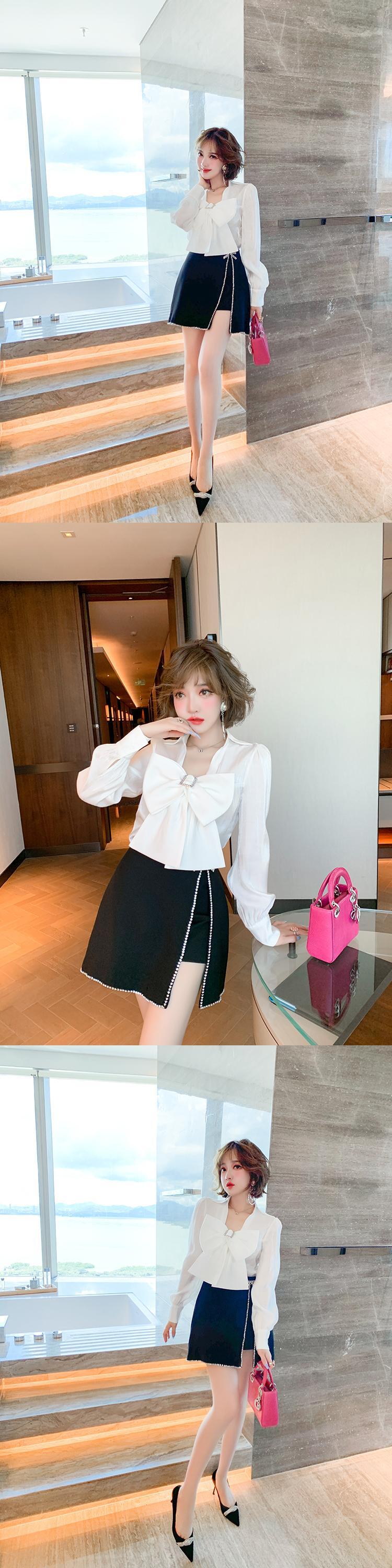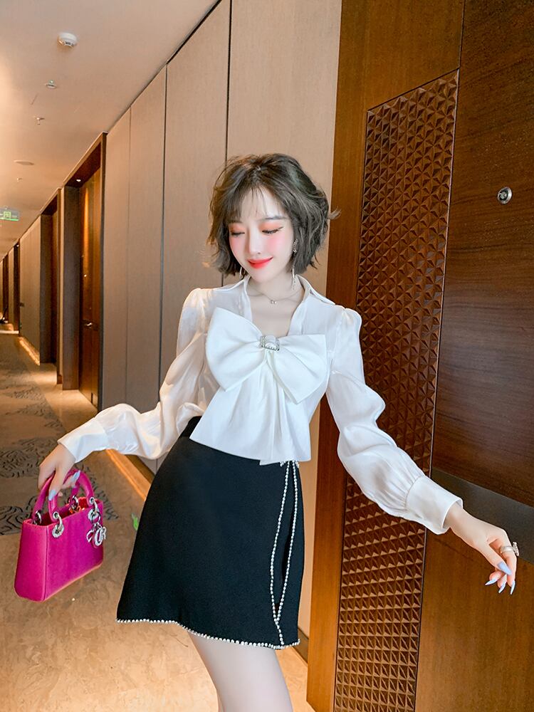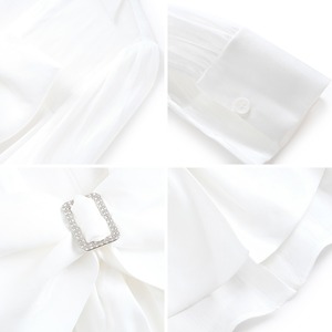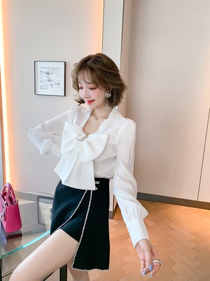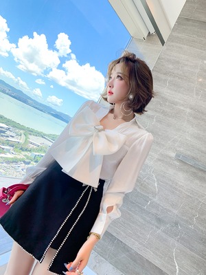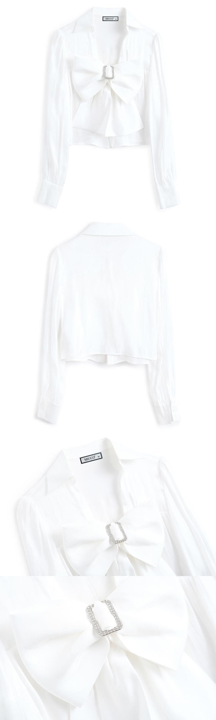 リボンフィットスリムソリッド カラーシャツ オータム ランタンスリーブ 大人ガーリー スウィート キュート カジュアル 秋物 ソリッドカラー MIUCO57884981162