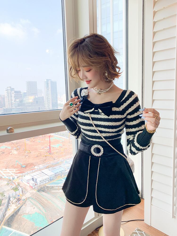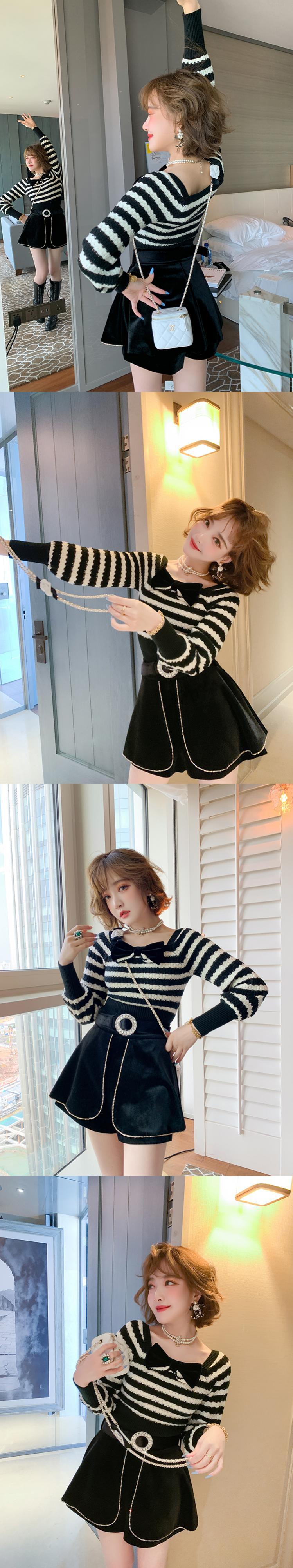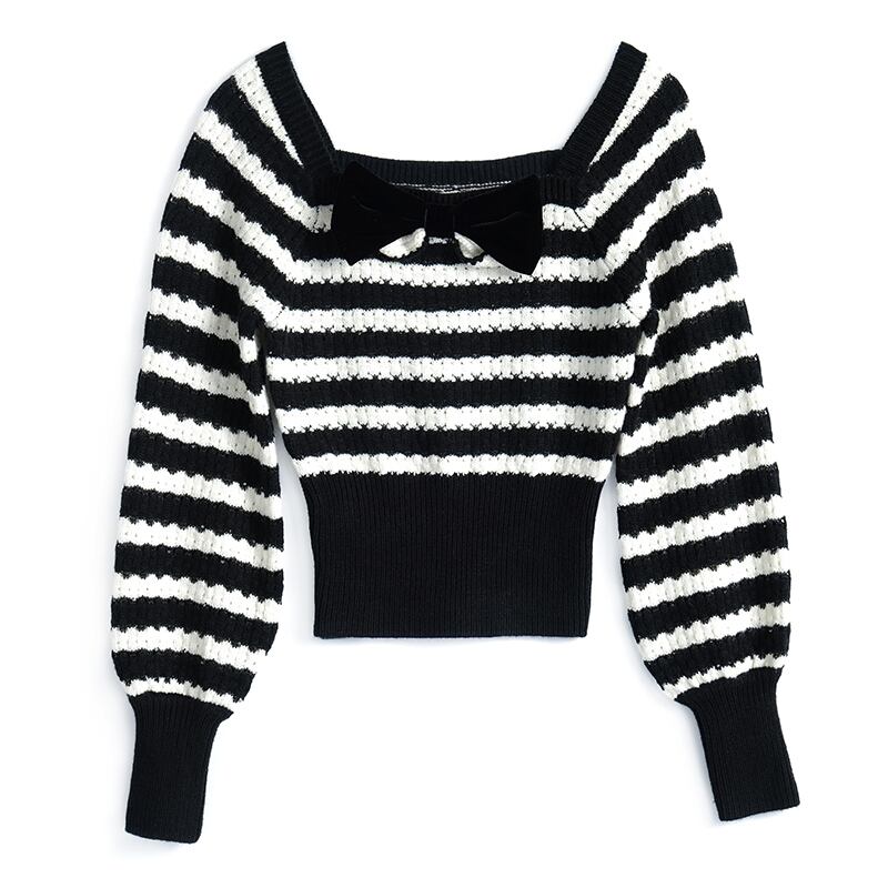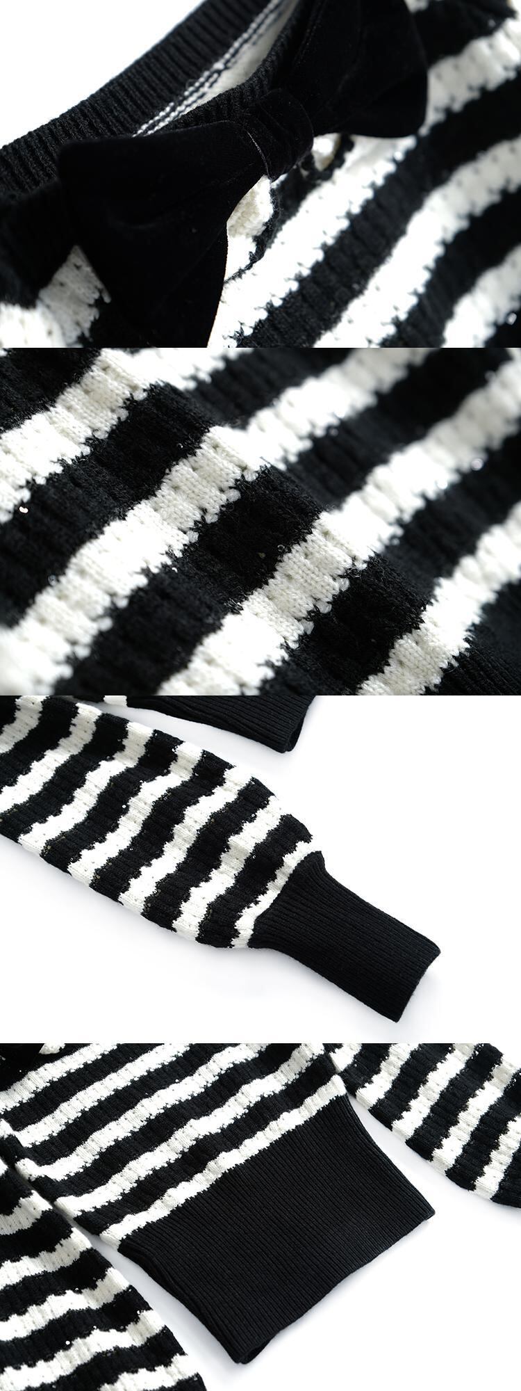 ベルベットリボンストライプスリムフィットニット スクウェア MIUCO88335903068