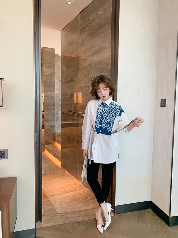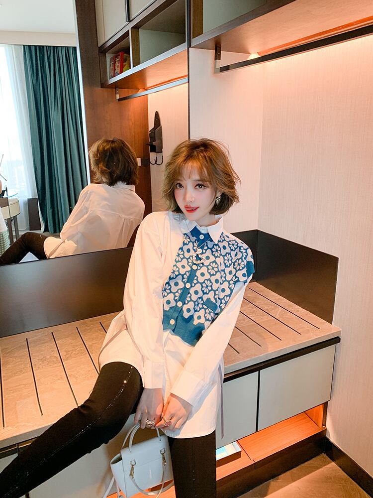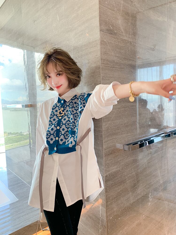 カラージャカードニットシャツ オータム 秋物 ステッチ MIUCO98188617510